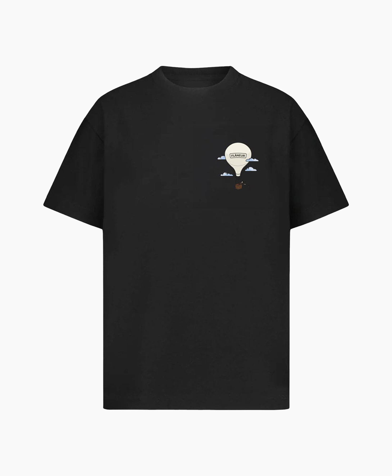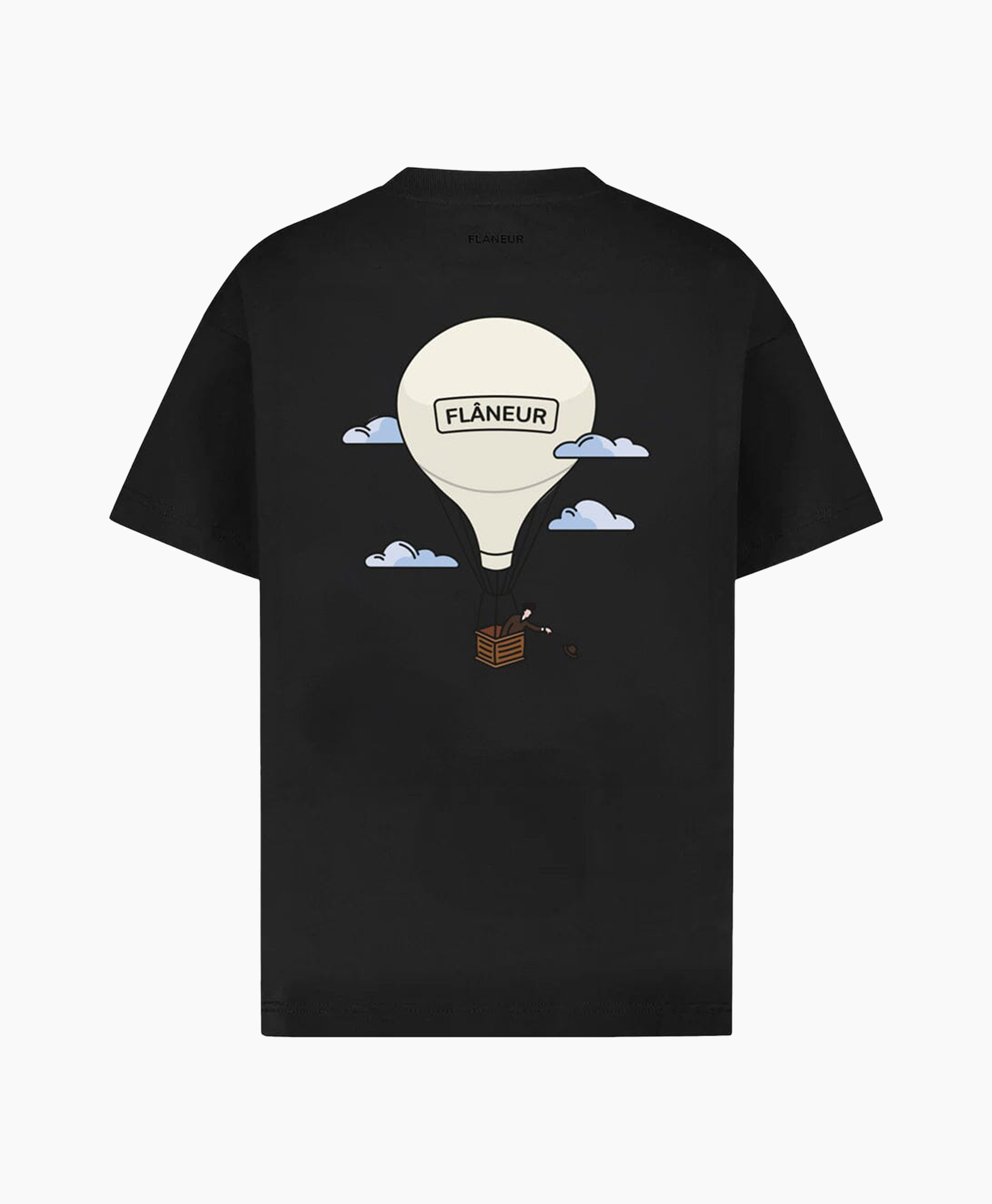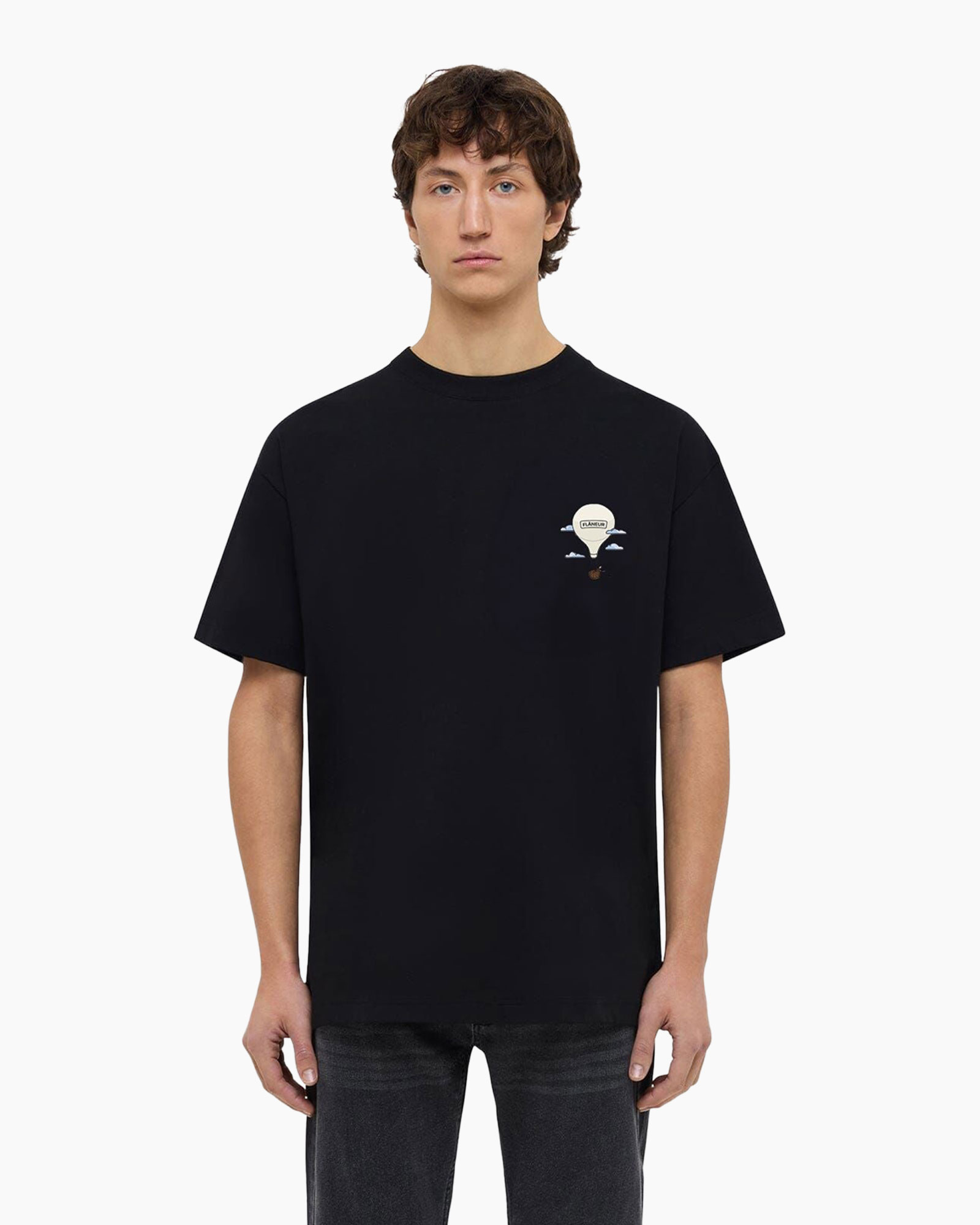 Gemaakt van hoogwaardig katoen, zorgt dit T-shirt voor optimaal draagcomfort. De losvallende pasvorm biedt bewegingsvrijheid. Details zoals de ribgebreide ronde hals en korte mouwen geven het shirt een klassieke look. Op de borst prijkt een subtiele ballonprint met het woord "Flaneur", terwijl dezelfde print op de rug in een groter formaat te vinden is, wat een speels element toevoegt.