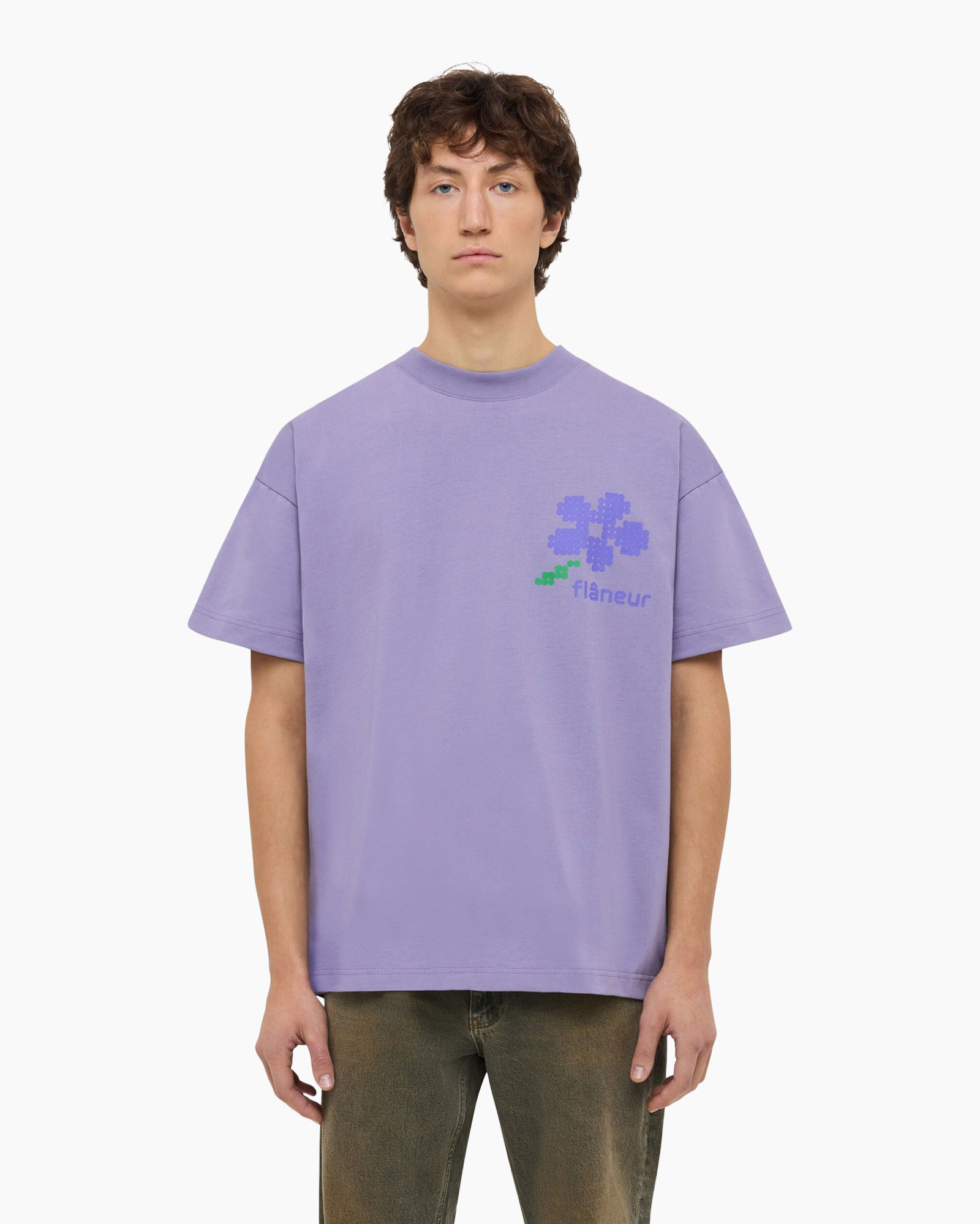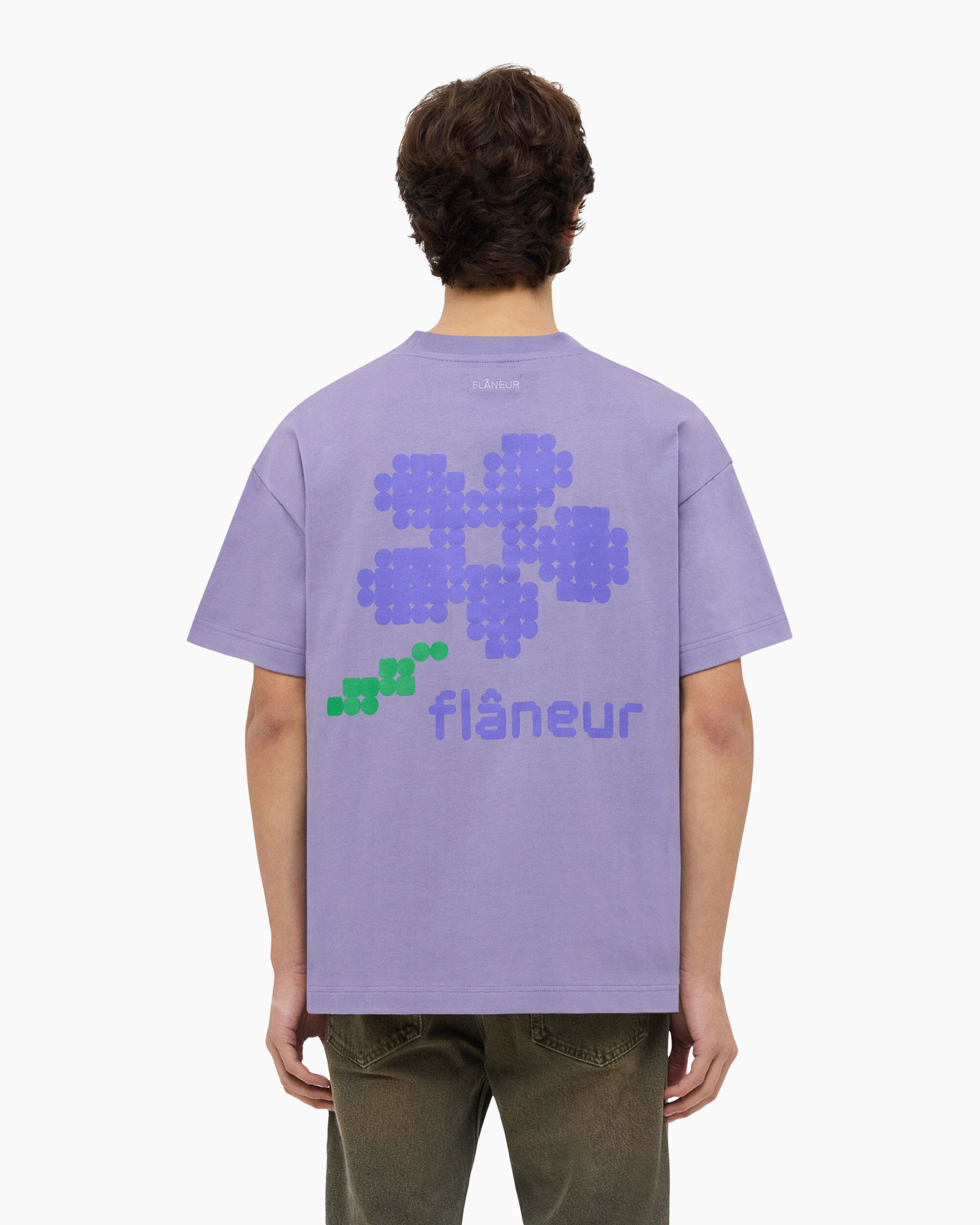 Het materiaal voelt zacht aan op de huid en zorgt voor ultiem draagcomfort. De losse pasvorm maakt het ideaal voor elke dag. De ronde halslijn en korte mouwen bieden een tijdloze look. Op de voor- en achterkant prijkt een unieke pixelbloemprint waar het woord “Flaneur” deel van uitmaakt, wat het T-shirt een speelse touch geeft.