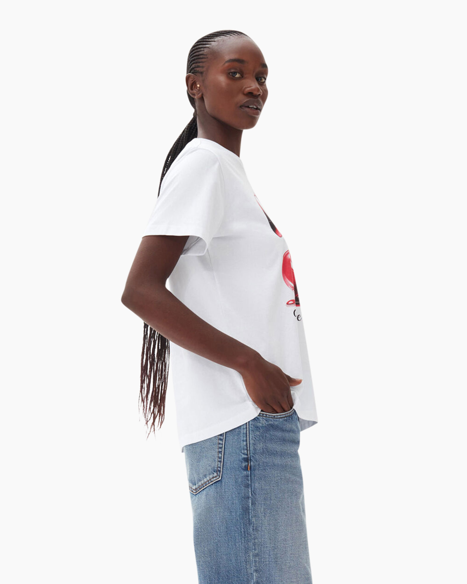T-shirt Korte Mouw Basic Jersey Cherry Relaxed Wit