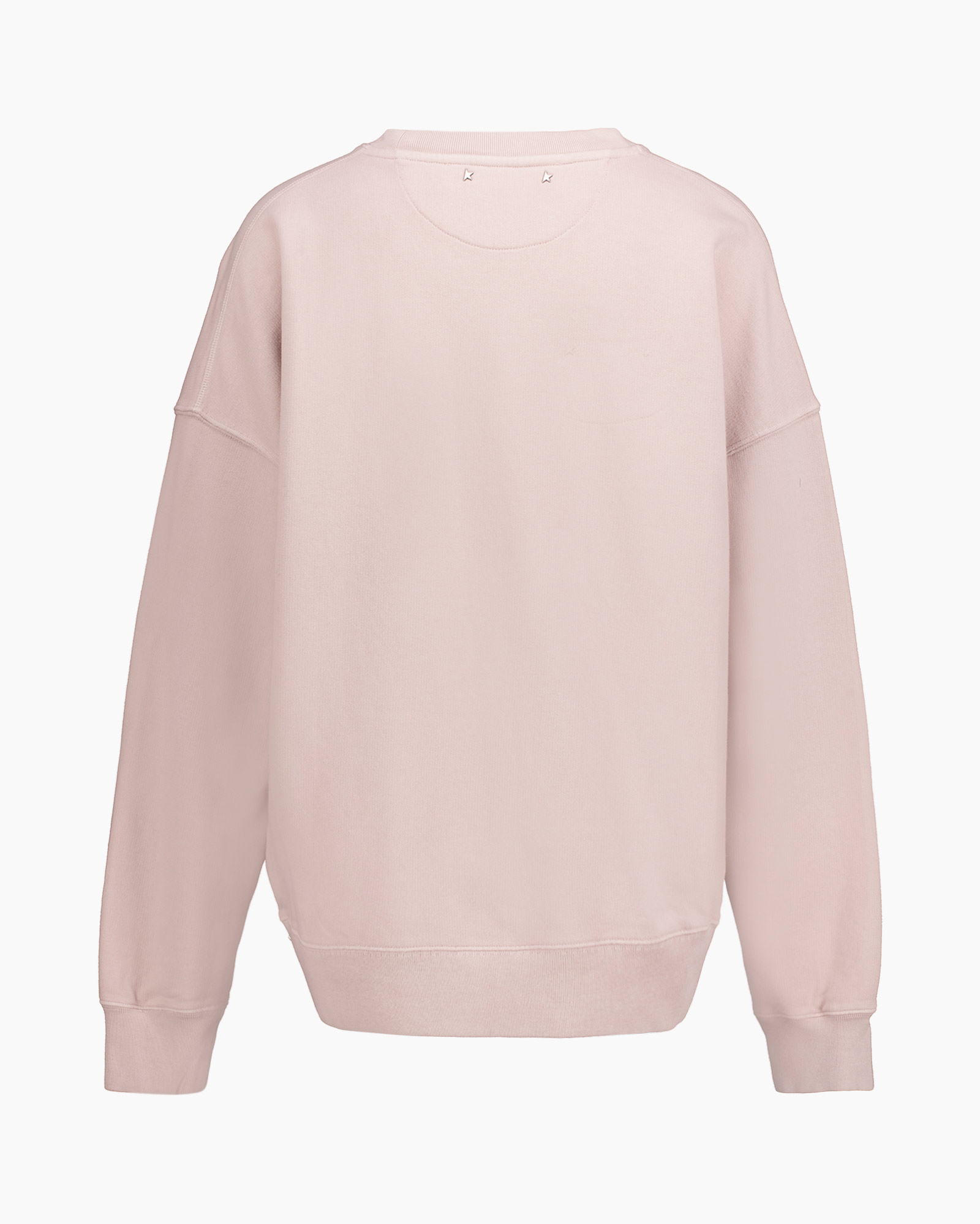 Met de Pullover Journey Unisex Crew Neck Dyed Vintage Col Rose van Golden Goose haal je een comfortabele sweater in huis die je direct pakt. De losse pasvorm, met duidelijk verlaagde schouders, zorgt voor ultiem draagcomfort in deze zachtroze tint. De opvallende grafische opdruk aan de voorzijde, uitgevoerd in een verweerde groene kleur, geeft de trui een sportief karakter. Let goed op de diagonale stikdetails aan de zijkant, want deze geven het item een uniek silhouet.