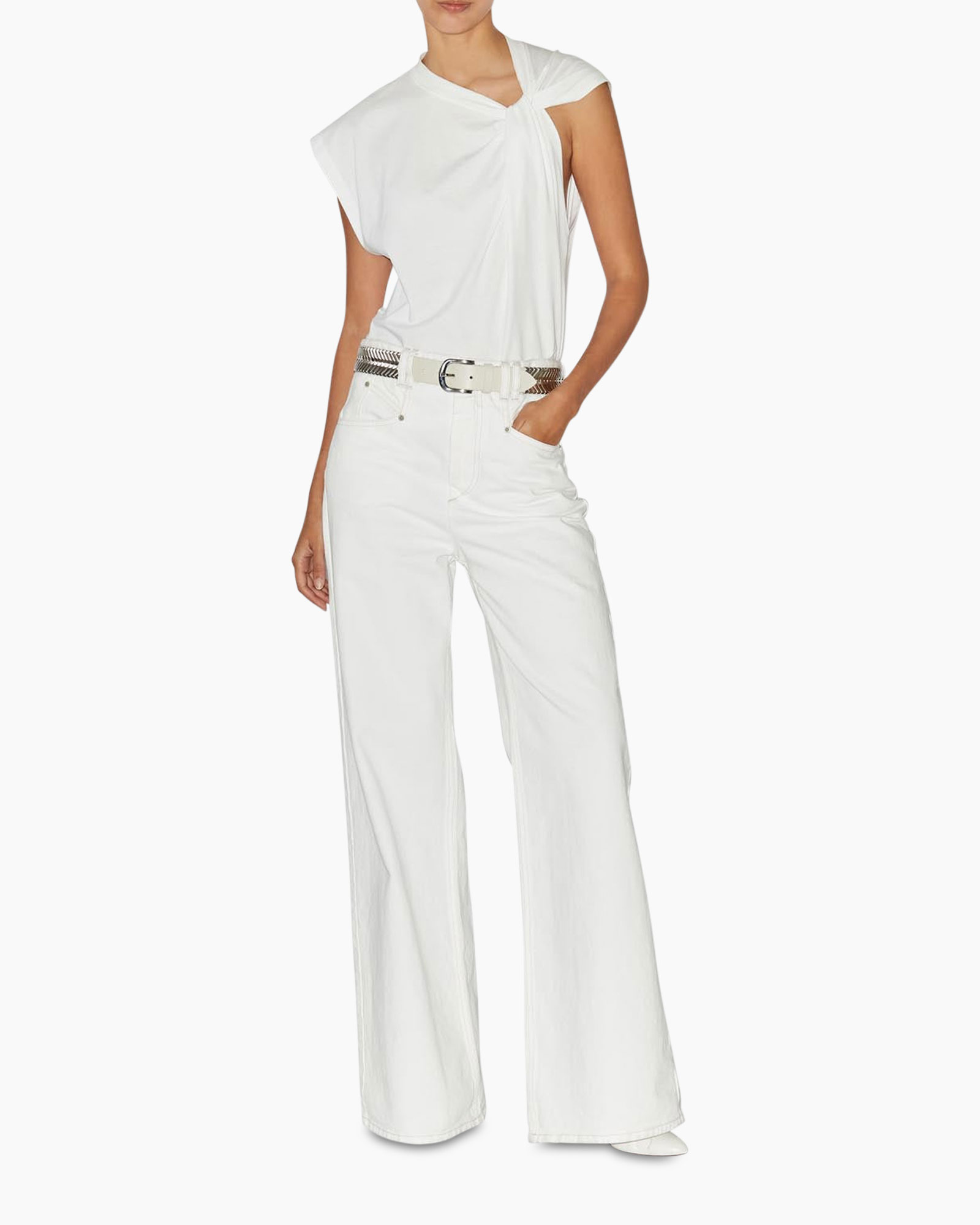Top Nayda Wit van Isabel Marant is een witte top die je een frisse uitstraling geeft. De asymmetrische halslijn en de knoop op de schouder trekken meteen de aandacht. Dit kledingstuk heeft een losse pasvorm en biedt veel bewegingsruimte. Op de rug zie je een verticale naad die van boven naar beneden loopt.