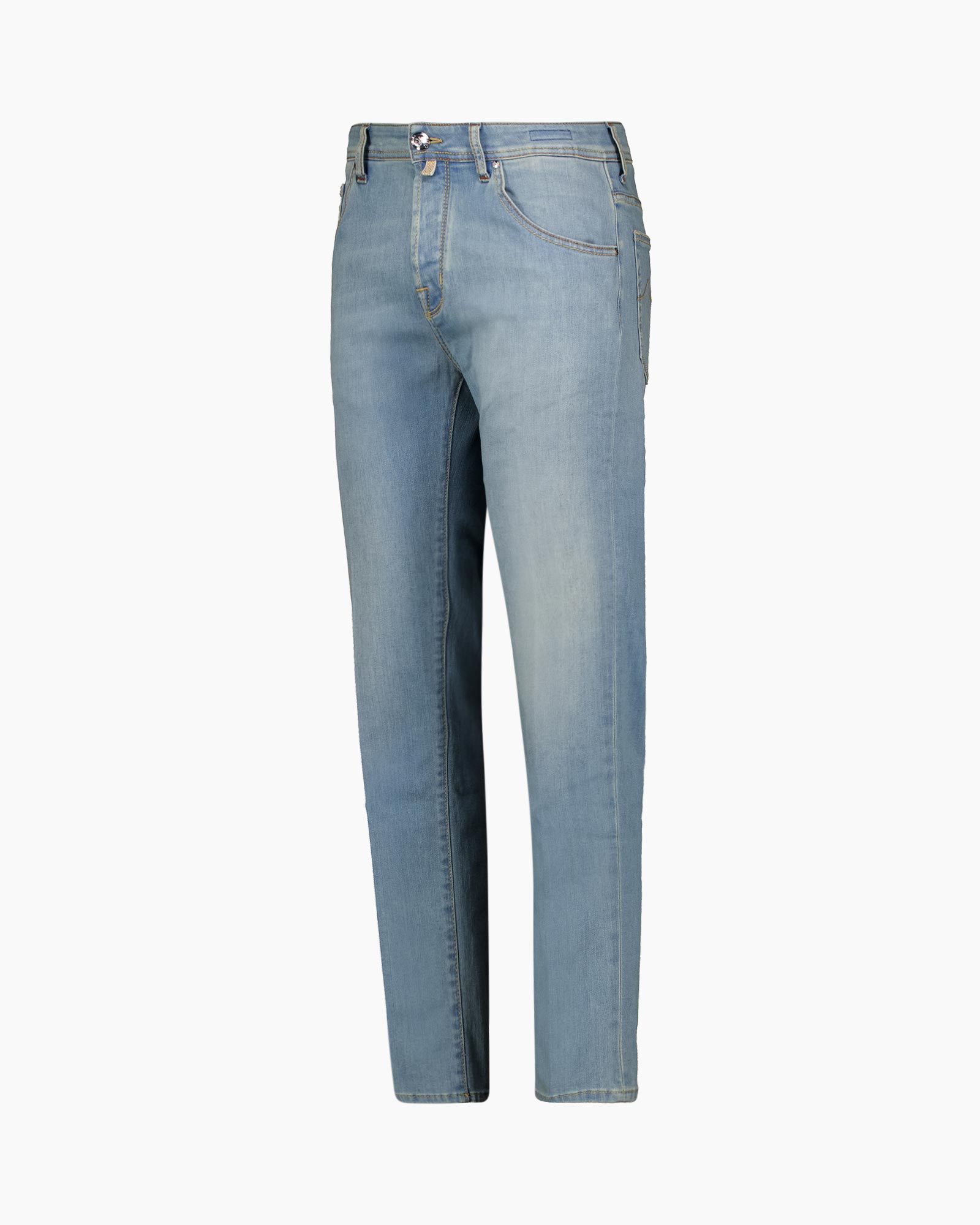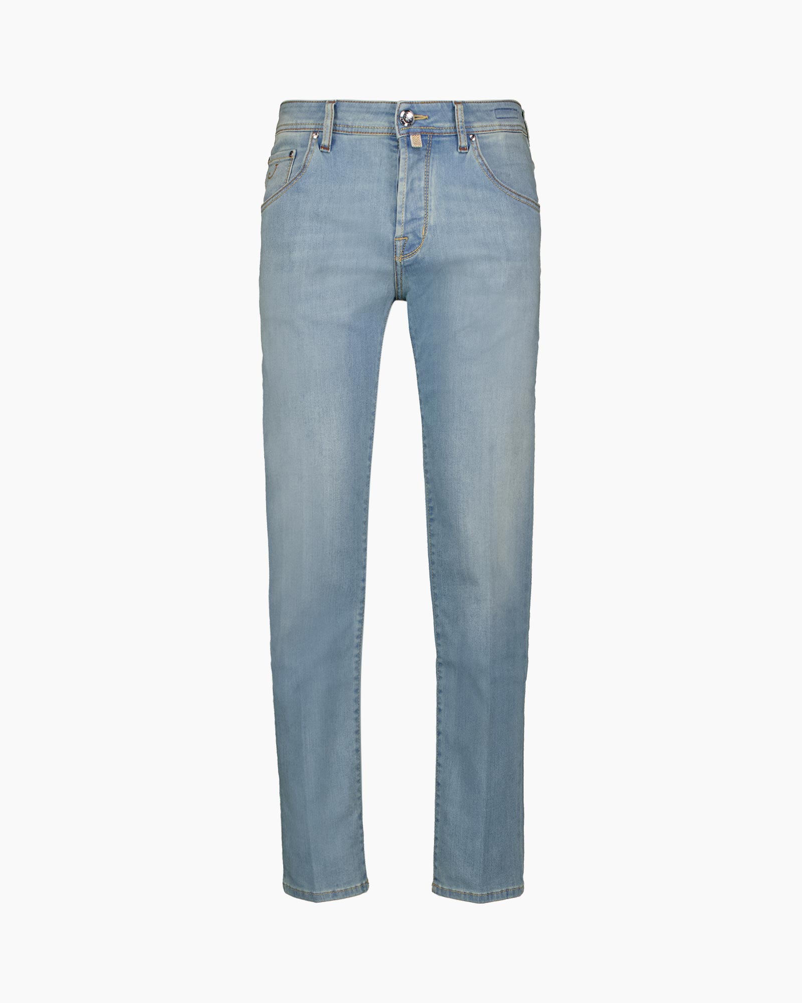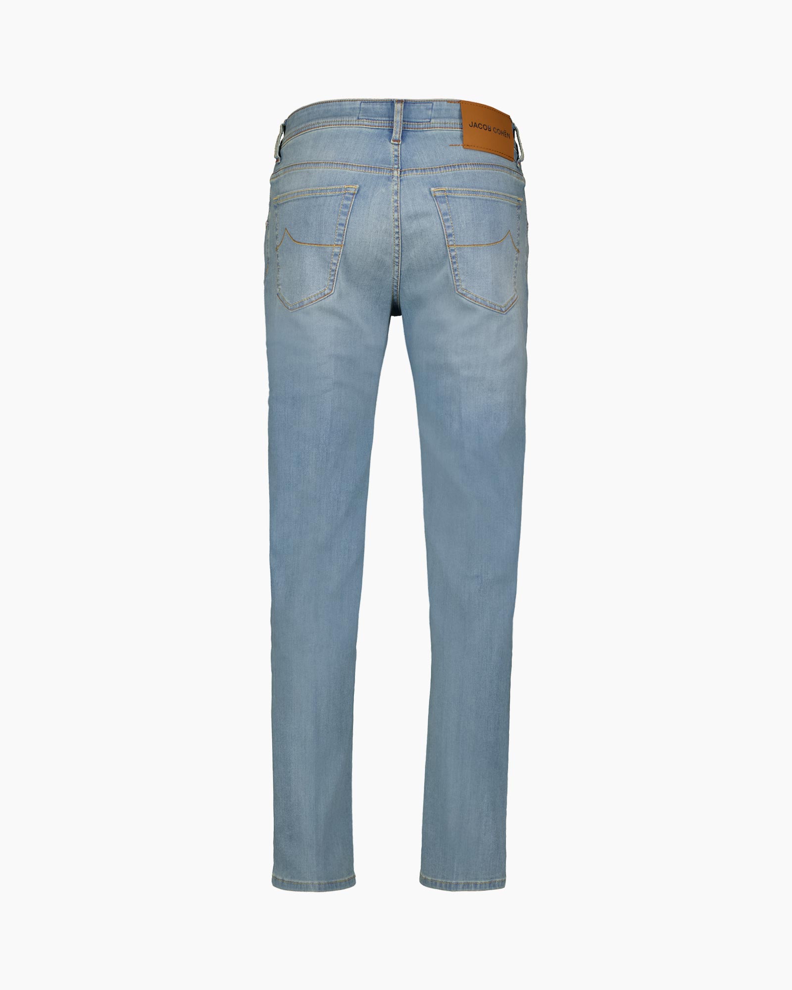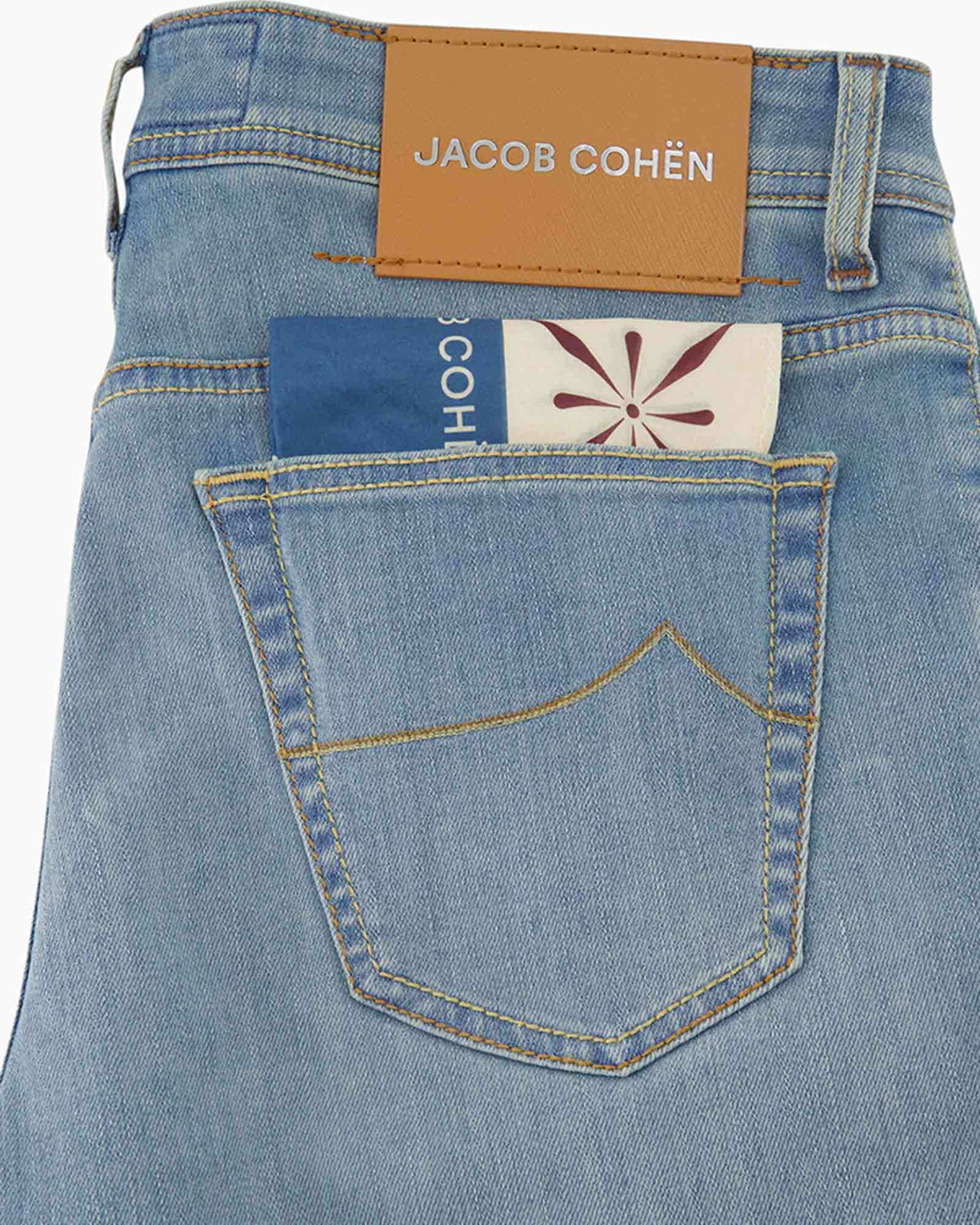 Jeans Slim Scott Licht Blauw van Jacob Cohen is een handgemaakt kledingstuk uit Italië. Dit item heeft een slanke pasvorm en een lichte kleur. De knoop van metaal en de patch op de achterkant tonen het vakmanschap. Je merkt het verschil direct door de afwerking met rozenwater en het gebruik van stoffen van hoge kwaliteit.