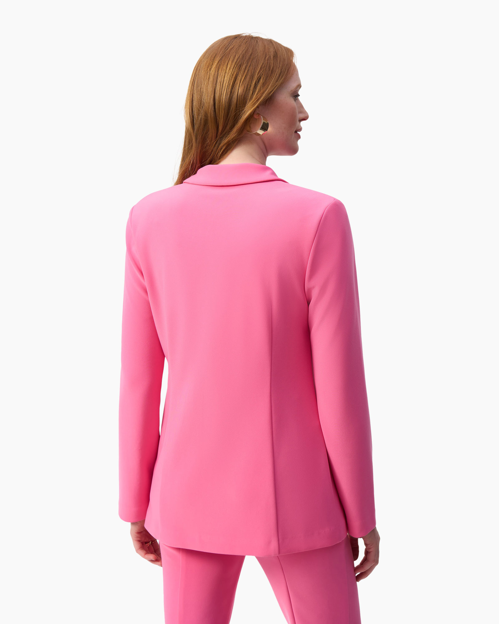 Gemaakt van premium materialen, biedt deze roze blazer ultiem draagcomfort. De pasvorm is flatterend en sluit mooi aan op het lichaam. De sluiting bestaat uit stijlvolle, bijpassende knopen en de blazer heeft subtiele details zoals elegante stiksels en praktische zakken.