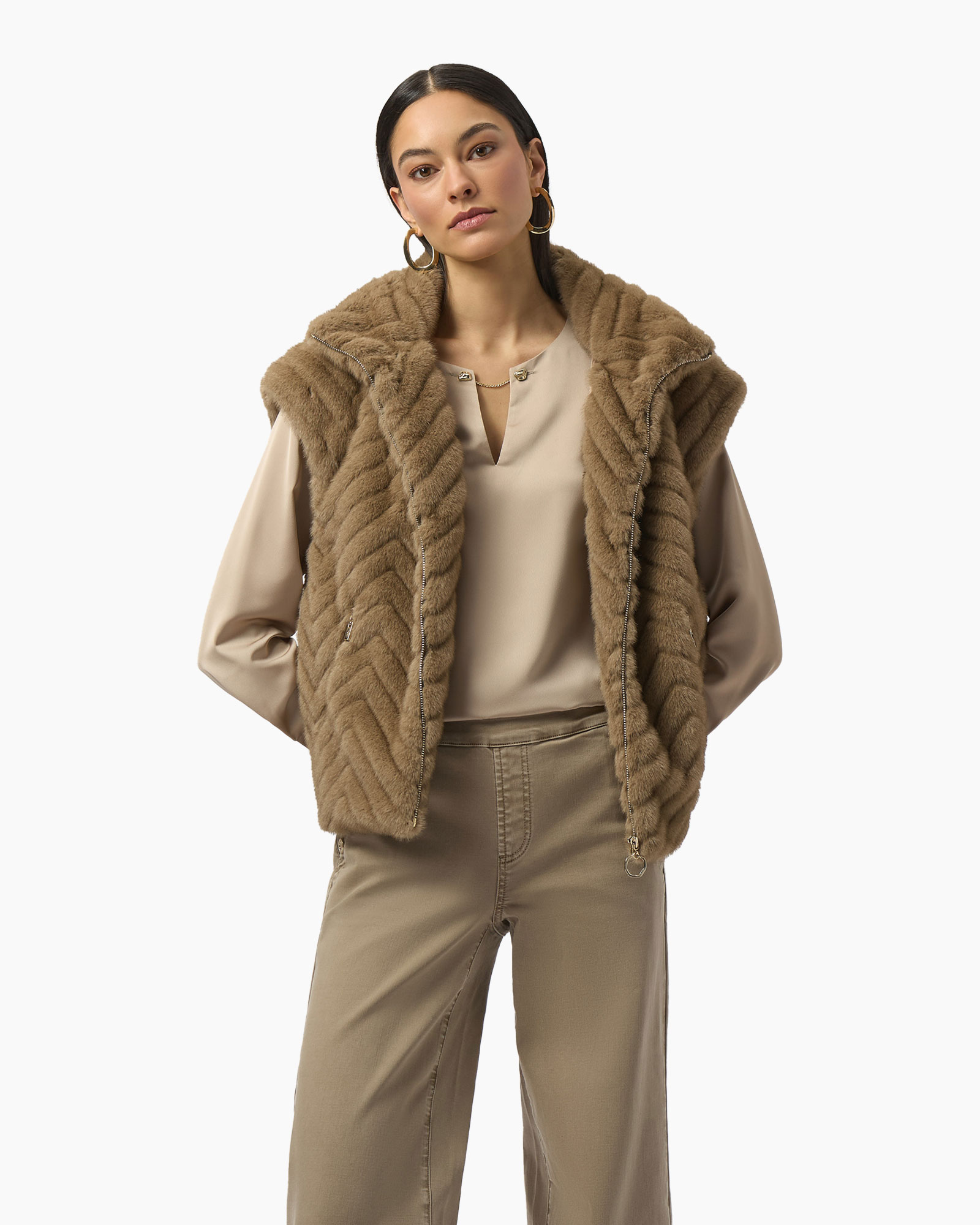 De Bodywarmer Mink Licht Bruin van Joseph Ribkoff kenmerkt zich door zijn verfijnde uitstraling en prachtig ontwerp. Met een comfortabele pasvorm die zacht om het lichaam valt, biedt deze bodywarmer zowel stijl als warmte. De lichtbruine kleur straalt subtiele elegantie uit, ideaal voor diverse gelegenheden.
