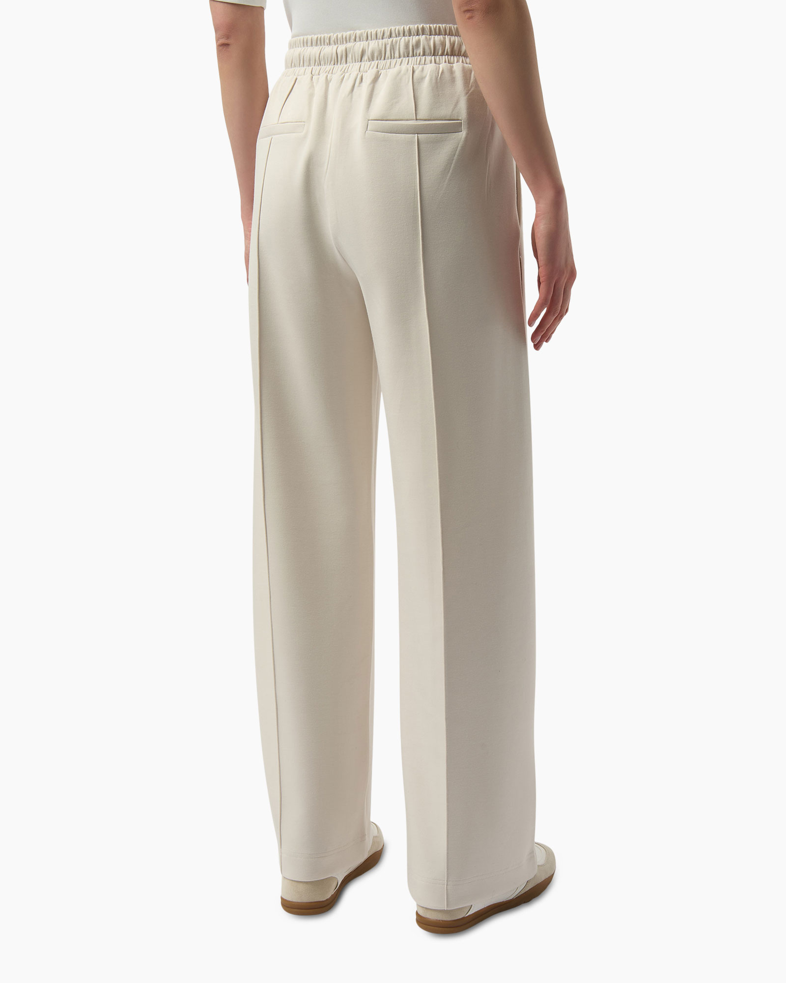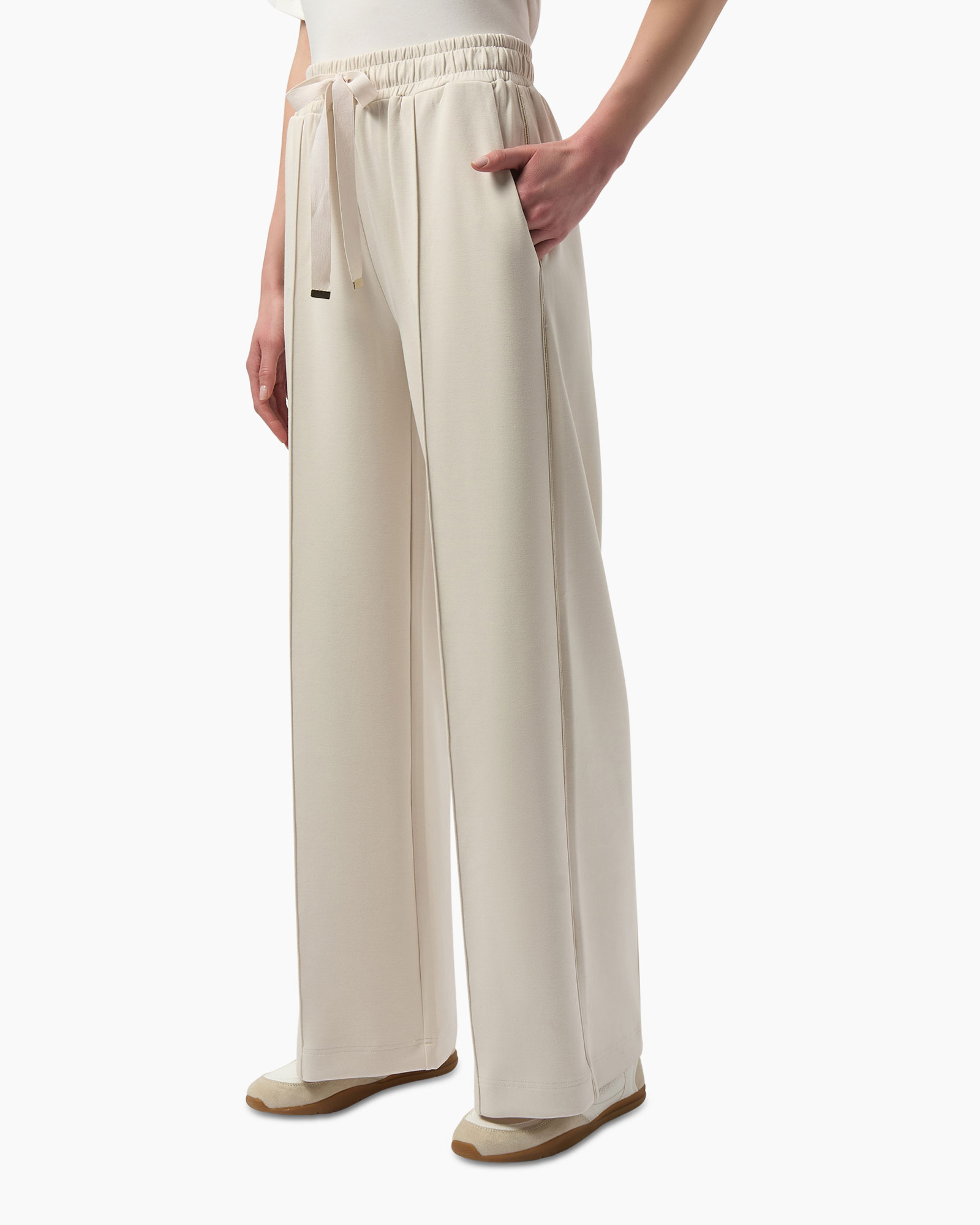 Deze pantalon is vervaardigd uit een zachte, ademende stof die zorgt voor een aangename pasvorm. De elastische tailleband met trekkoord voegt een casual element toe zonder in te leveren op stijl. Twee discrete steekzakken maken het design functioneel. De subtiele beige kleur maakt deze pantalon veelzijdig en gemakkelijk te combineren.