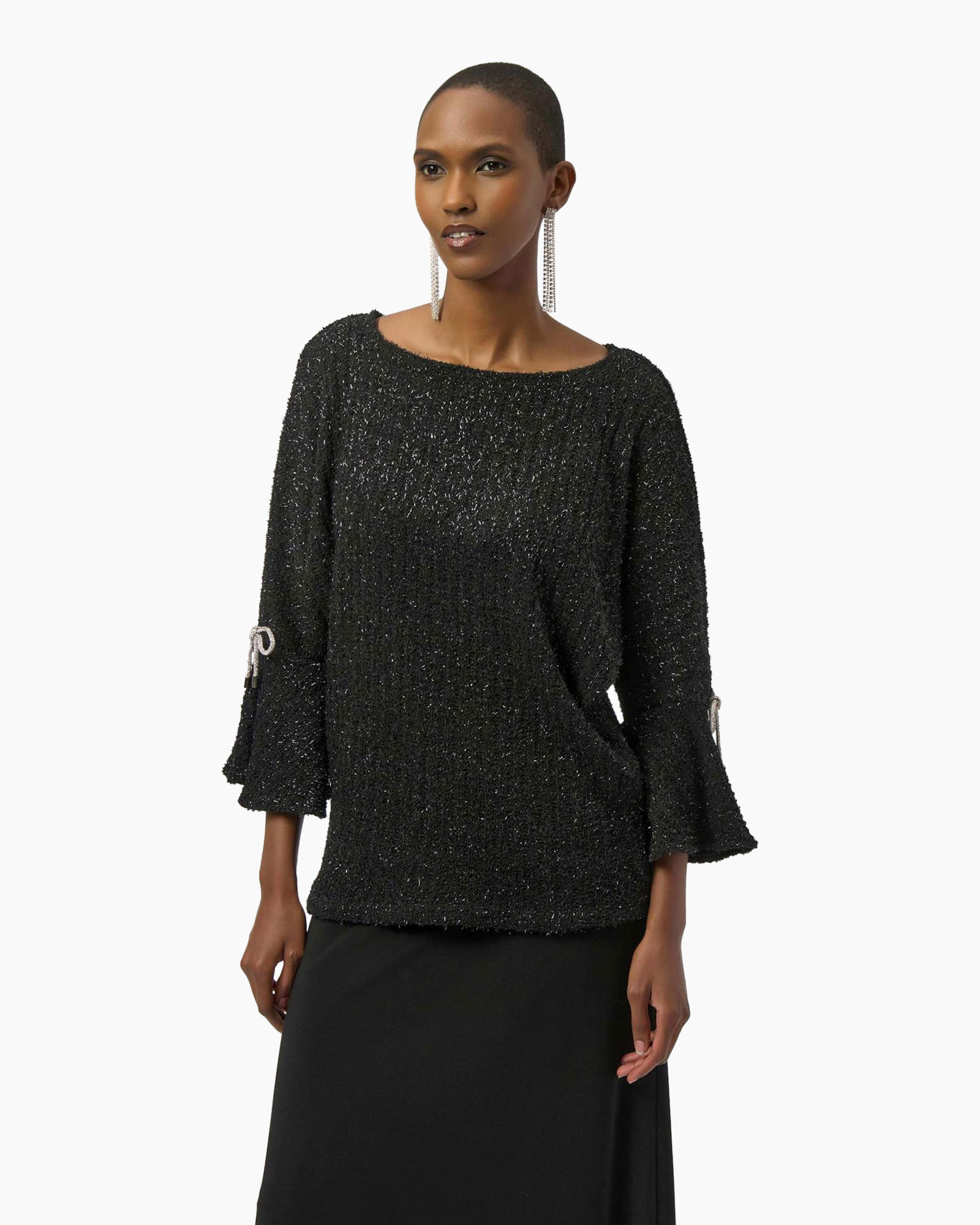 De Top Sequin Zwart van Joseph Ribkoff biedt een elegante uitstraling met een veelzijdige pasvorm. Deze prachtige top in zwart straalt door subtiele pailletten, perfect voor diverse gelegenheden. Het materiaal voelt comfortabel aan en valt soepel over het lichaam.