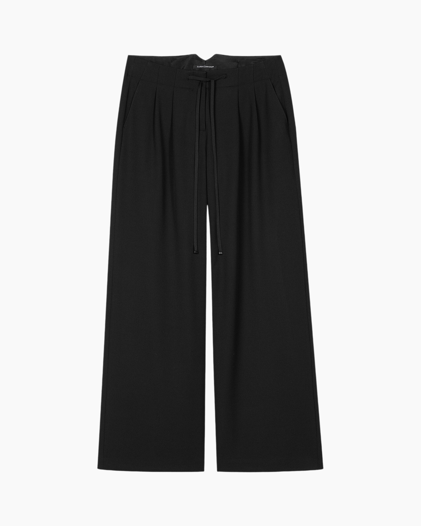 Broek 638864/3453-0 Zwart dessin van Luisa Cerano is een wijde pantalon die je direct een sterke look geeft. De broek heeft een hoge pasvorm en de brede, rechte pijpen zorgen voor een soepele, vloeiende lijn. De diepzwarte kleur maakt deze broek erg veelzijdig. Let op de afwerking van de taille: een trekkoord aan de voorzijde combineert met een verstelbare riem en gesp achterop. De twee klepzakken op het achterpand geven de broek een duidelijke, verzorgde uitstraling.