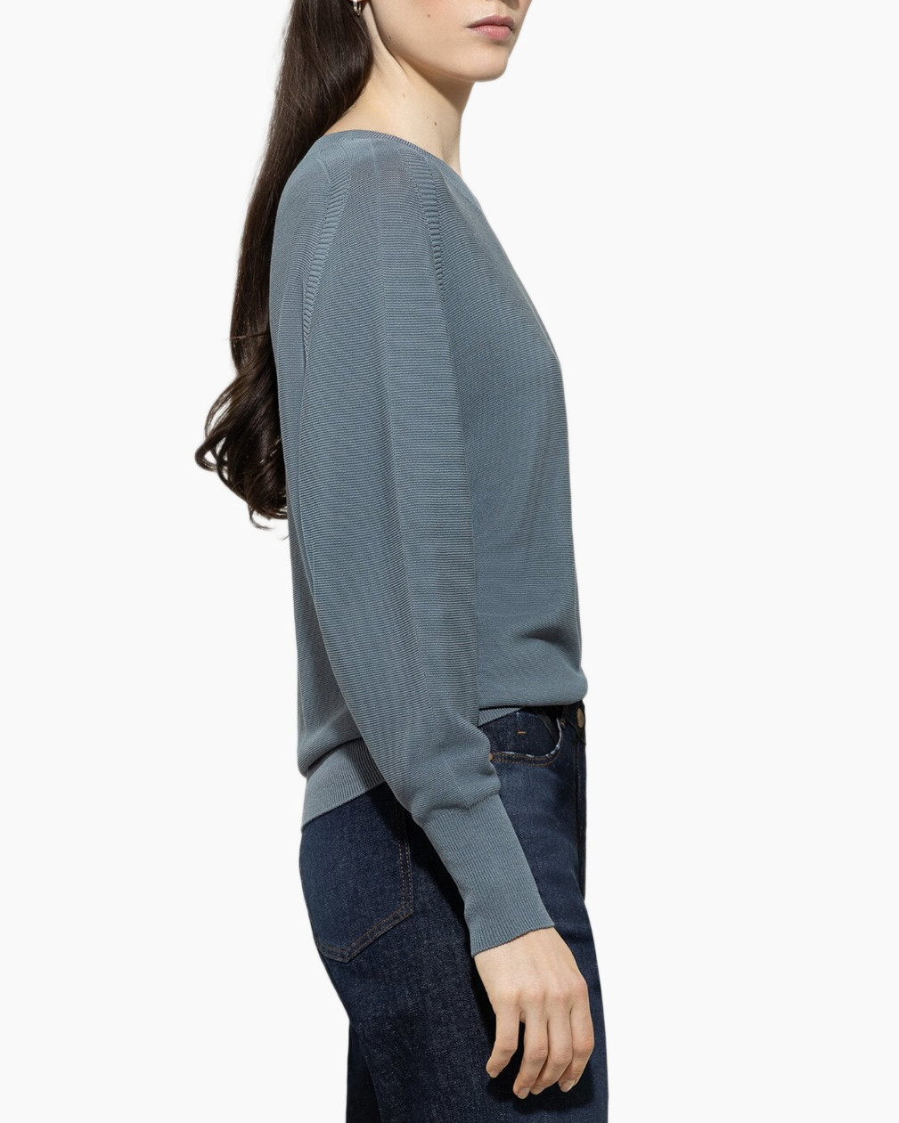 - Brede ribmouwen en zoom