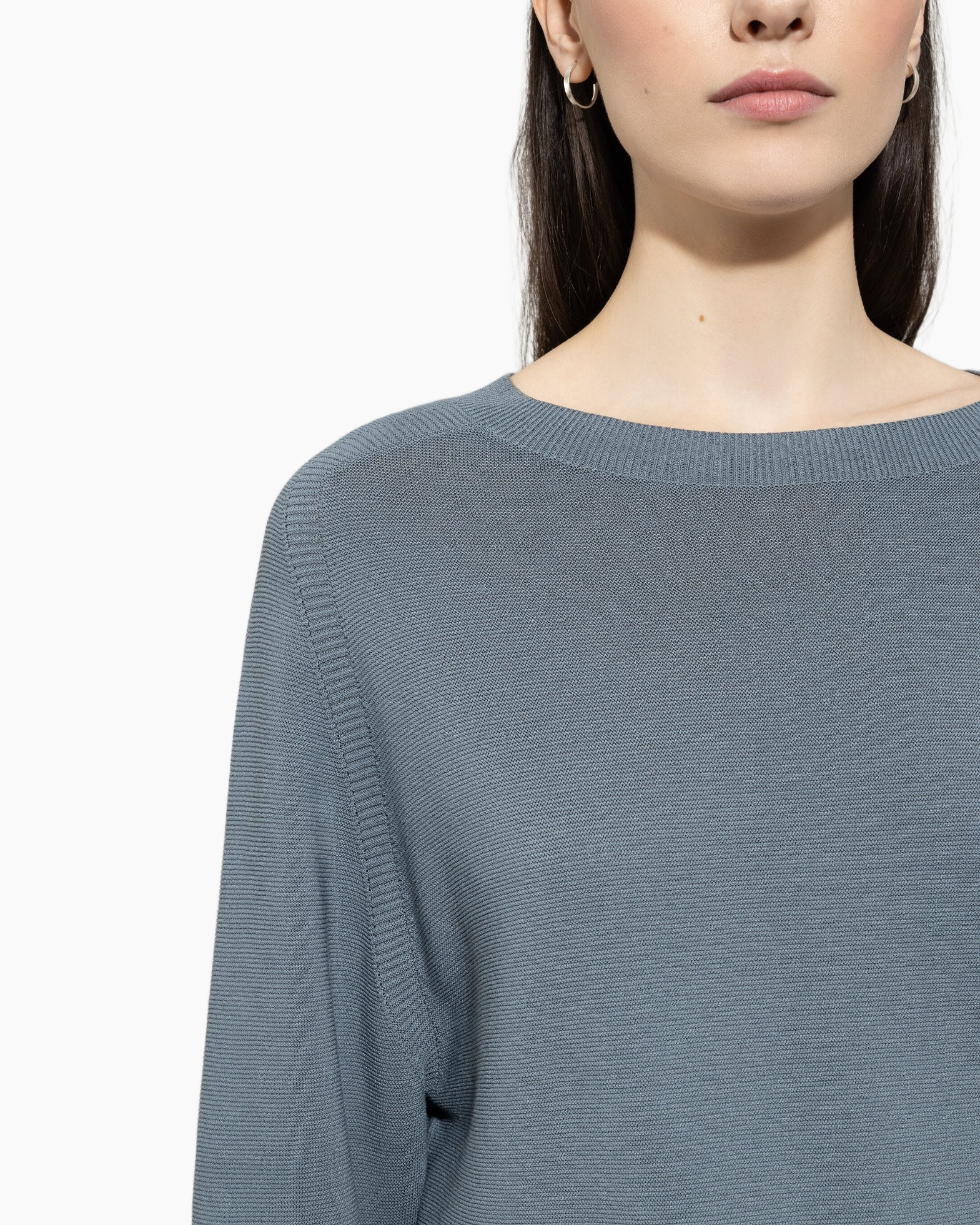 Deze turquoise trui biedt warmte tijdens frisse dagen. De katoenmix voelt zacht aan en blijft mooi in vorm door de nylon. Een blauwgrijze tint zorgt voor een veelzijdige basis. Het breisel valt soepel en geeft een verzorgd gevoel.