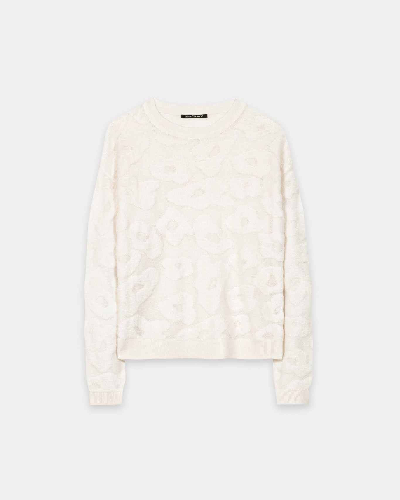 Trui 138738/5923-0 Ecru van Luisa Cerano is de trui die direct je aandacht trekt. Dit gebreide item valt recht om je lichaam en de pasvorm eindigt kort bij de heupen. De zachte Ecru kleur geeft deze top een lichte uitstraling en de stof heeft een kenmerkende textuur. Je ziet een subtiel, driedimensionaal dessin over de gehele trui. Dit is een veelzijdig kledingstuk dat je direct karakter geeft.