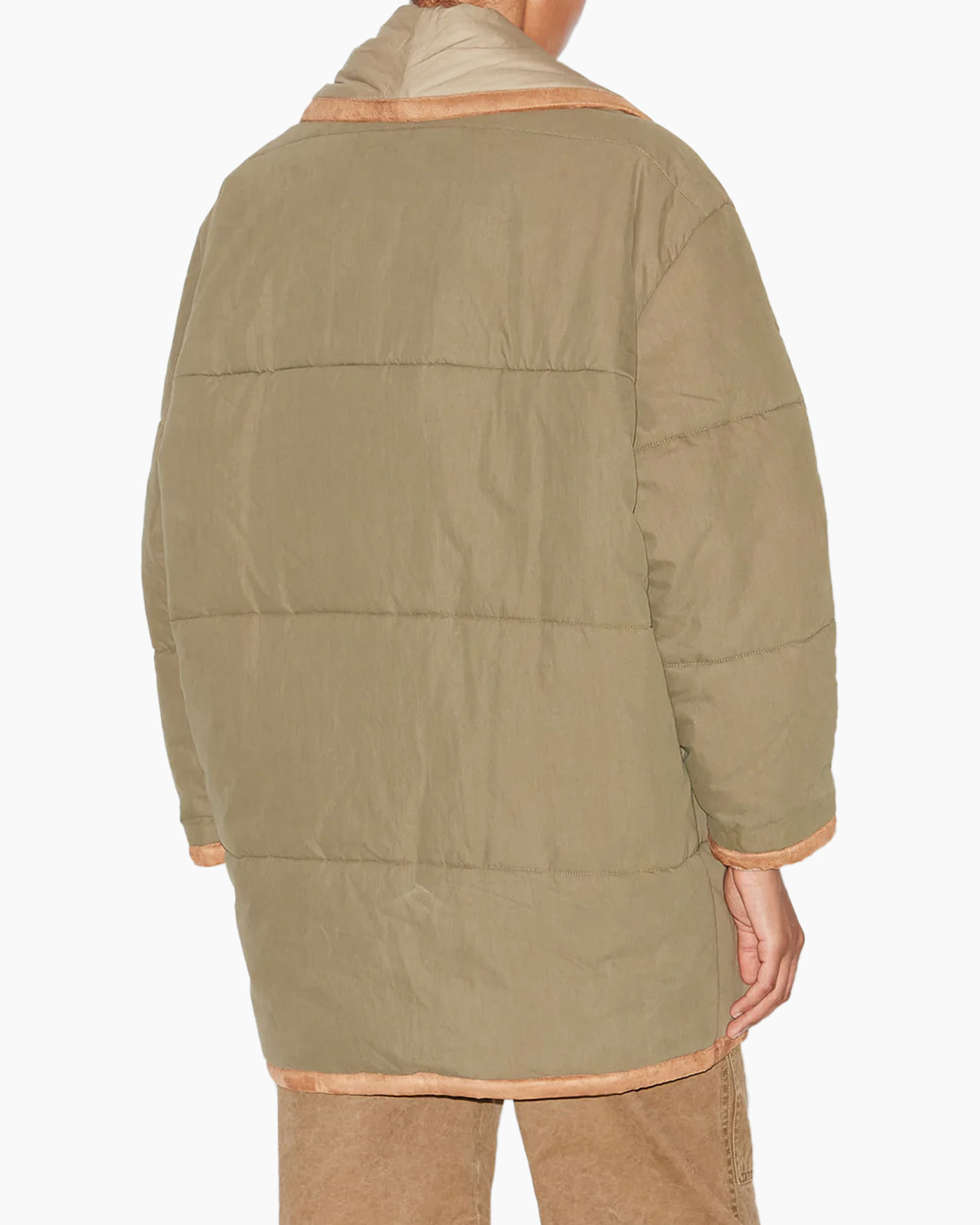 Kijk eens naar de Gewatteerde Jas Gally-ga Khaki van Marant Étoile, een jas die je direct wilt dragen. Deze gewatteerde jas heeft een royale pasvorm, ideaal om te combineren met dikkere kledingstukken. De diepe kakikleur contrasteert mooi met de brede reverskraag en de zachte biesafwerking in een bruine tint. Gebruik de schuine steekzakken om je essentiële spullen mee te nemen.