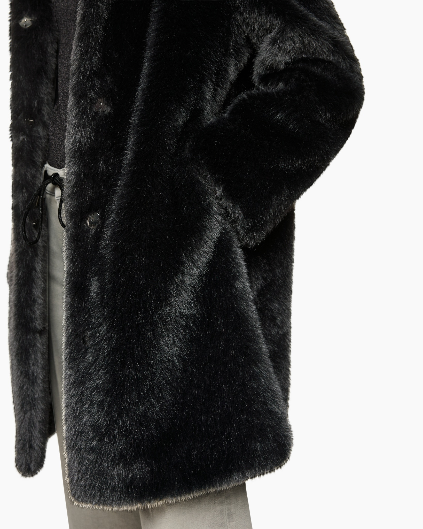Met de Jas Za 11.06 W87 Zwart van Marc Cain Additions voeg je een heerlijke jas toe aan je collectie. Deze zwarte jas van zacht imitatiebont valt ruim en geeft je direct een comfortabel gevoel. Hij heeft een ideale lengte tot halverwege je bovenbeen, waardoor je hem makkelijk over diverse outfits draagt. De pasvorm is los en ontspannen, met ruime schouders die prettig vallen. Aan de voorzijde sluit je deze jas met twee opvallende zwarte knopen. Je handen steek je eenvoudig weg in de praktische steekzakken aan de zijkant. De diepe, royale capuchon is voorzien van een extra rand die voor een volumineuze look zorgt en je heerlijk warm houdt.