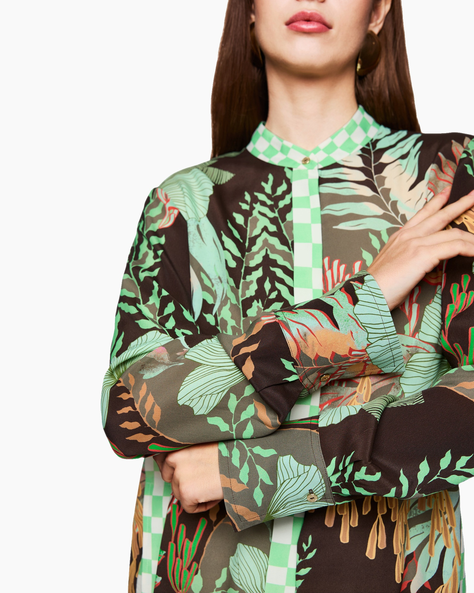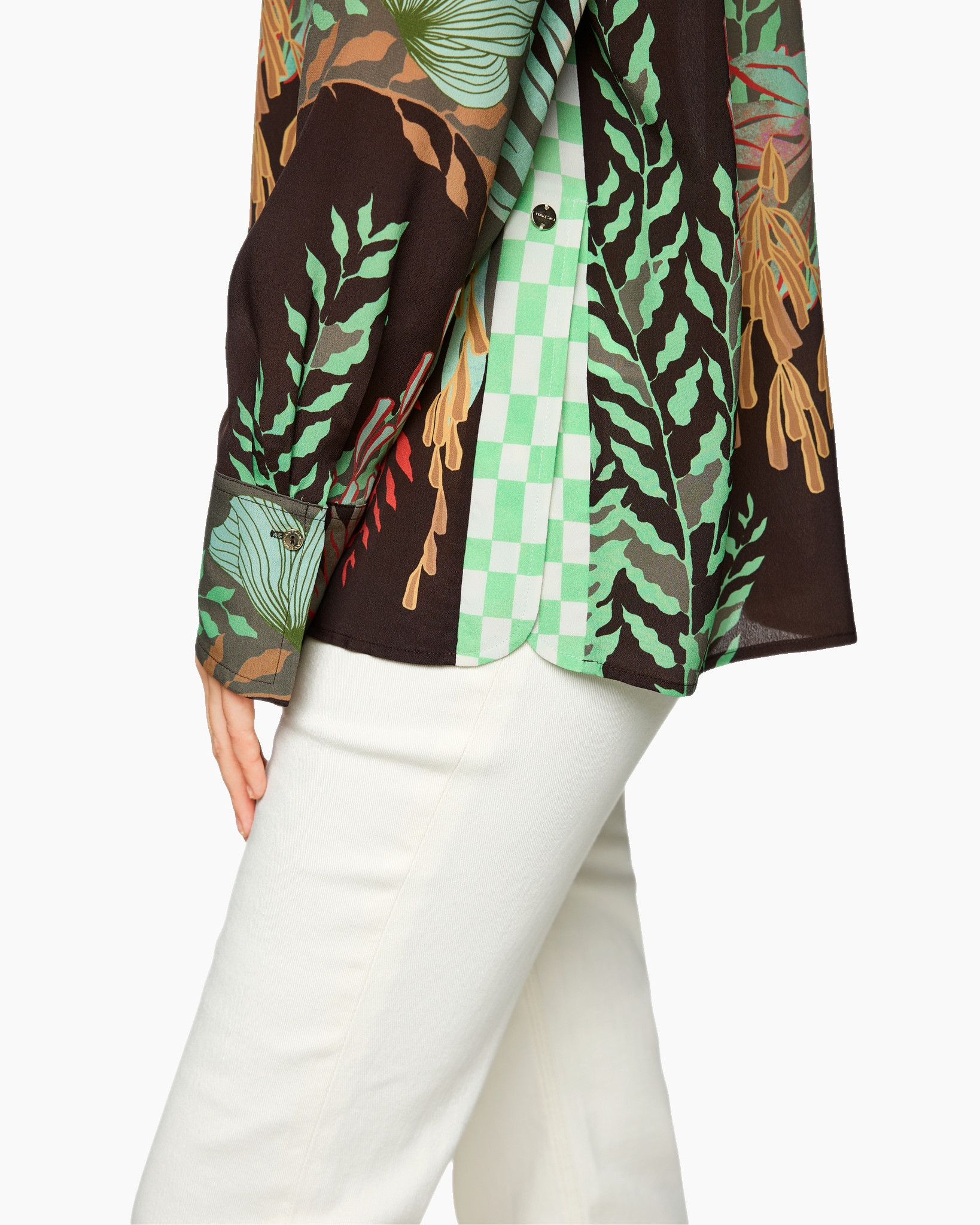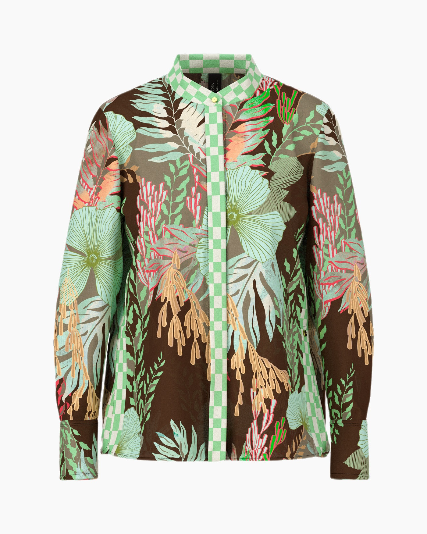 De blouse is vervaardigd van een lichte stof die zacht aanvoelt op de huid, ideaal voor dagelijks comfort. De lange mouwen en het klassieke boord zorgen voor een tijdloze uitstraling. De knoopsluiting aan de voorkant voegt een subtiele touch van elegantie toe, terwijl de artistieke print een modern accent geeft. Het logo van Marc Cain is op subtiele wijze verwerkt voor een verfijnde merkherkenning.