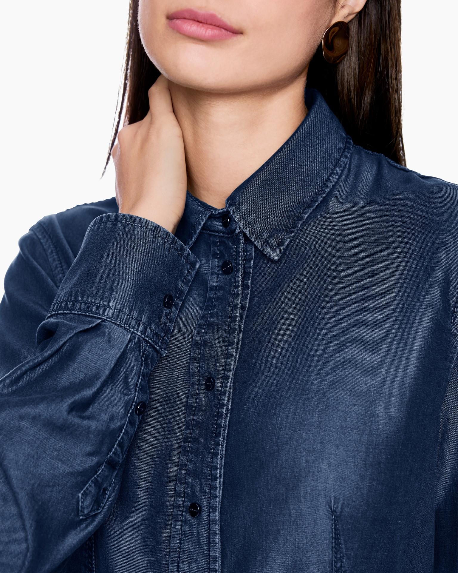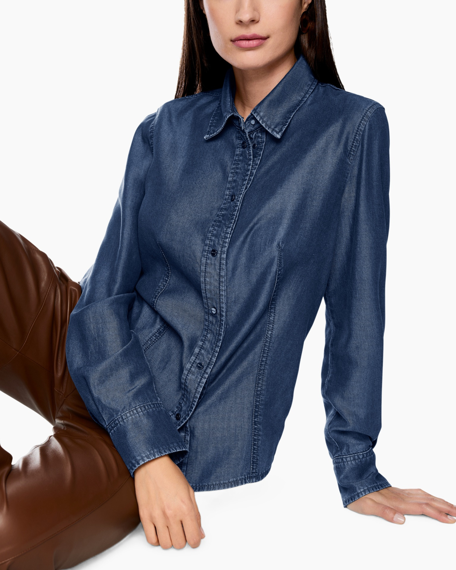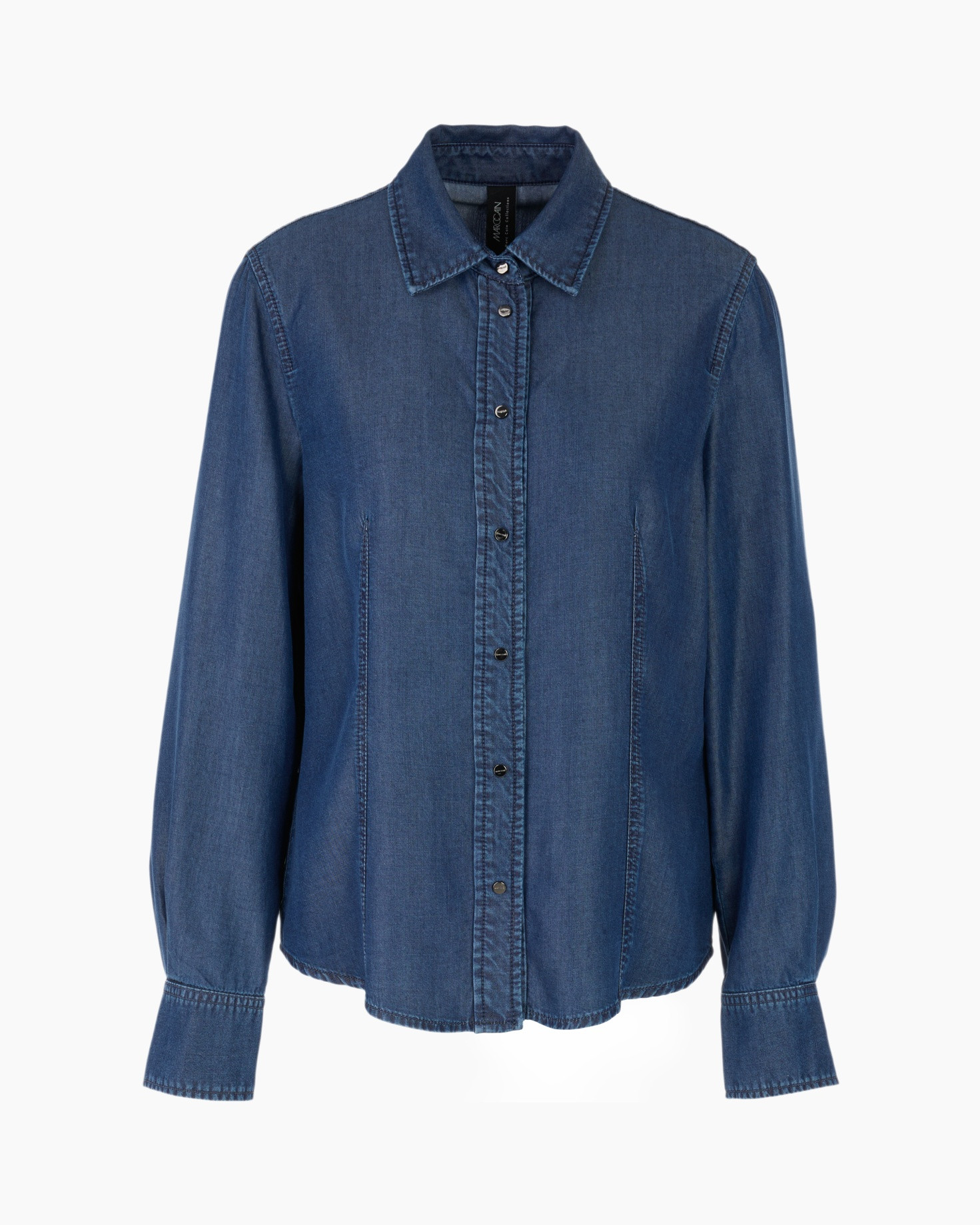 Jij kiest goed met de Blouse Zc 51.34 D08 Jeans van Marc Cain Collections, een tijdloze jeansblouse die je garderobe compleet maakt. Deze blouse valt getailleerd en volgt je lijnen door de slimme verticale coupenaden aan voor- en achterzijde. De diepe jeansblauwe kleur met subtiele wassing geeft de stof een levendig karakter. Je ziet een klassieke kraag, een doorlopende drukknoopsluiting en manchetten met knopen die je gemakkelijk oprolt. De schouderpas op de rug maakt de denim look helemaal af.