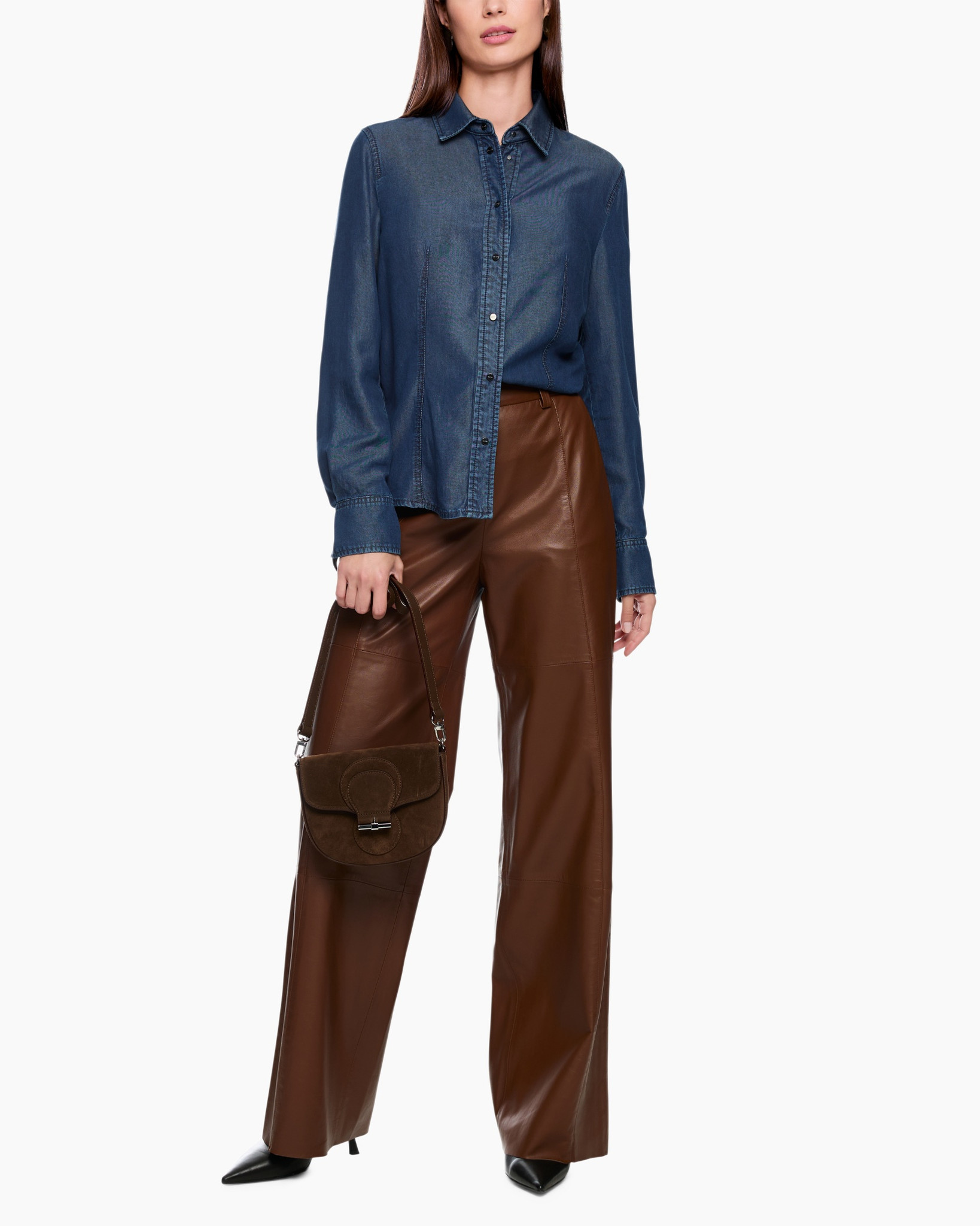 Combineer deze blouse met een leren broek of rok voor een mooie textuurcombinatie.