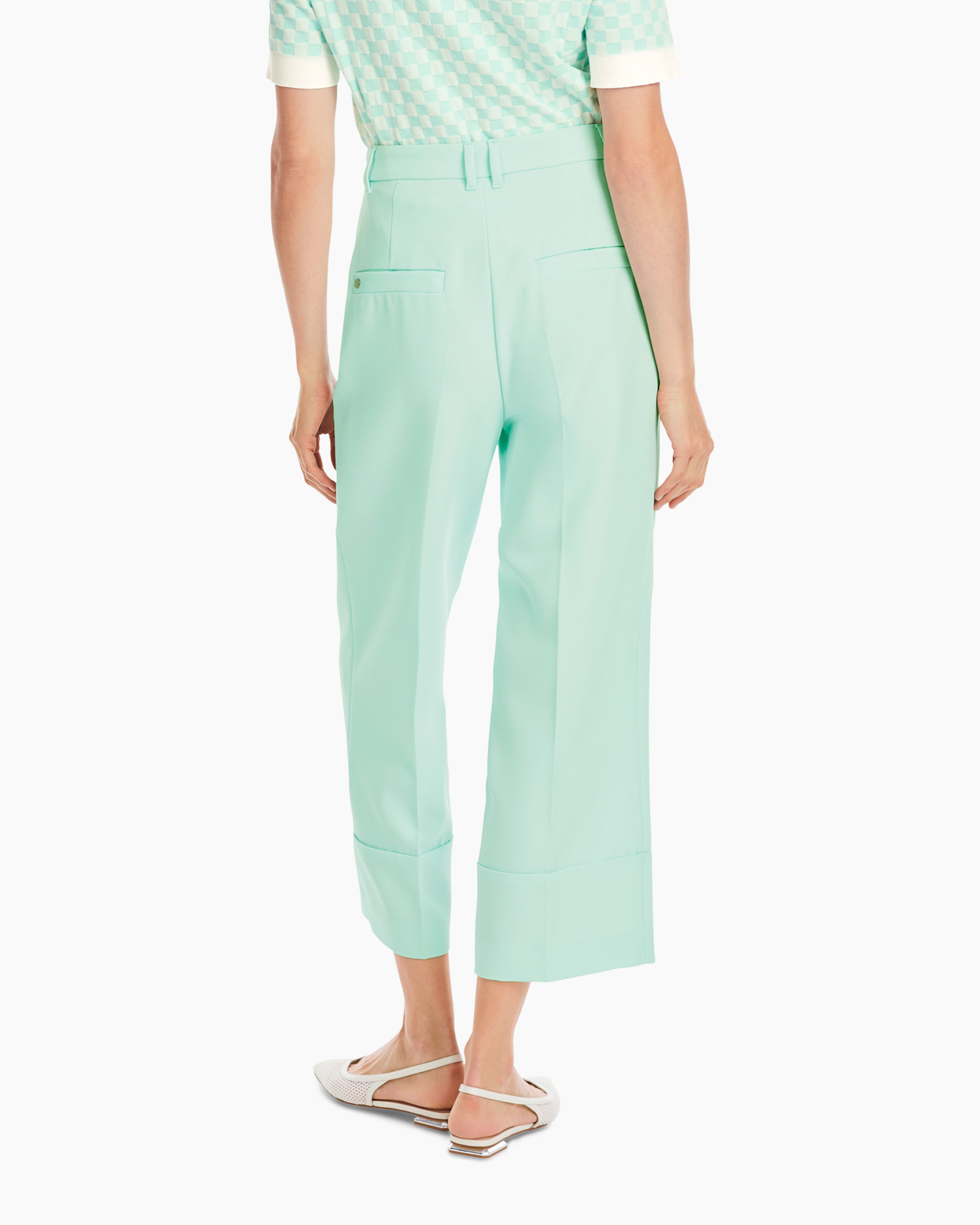 Het WUKARI model is een trendy broek gemaakt van rekbare keperstof. De snit is wijd, de taille is hoog en de pijpen zijn getailleerd. Opvallend: de gebreide look! Een trendy stijl voor elke dag. Ziet er geweldig uit met een twin set.