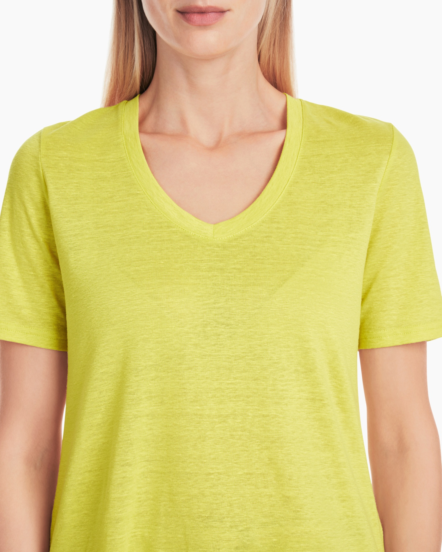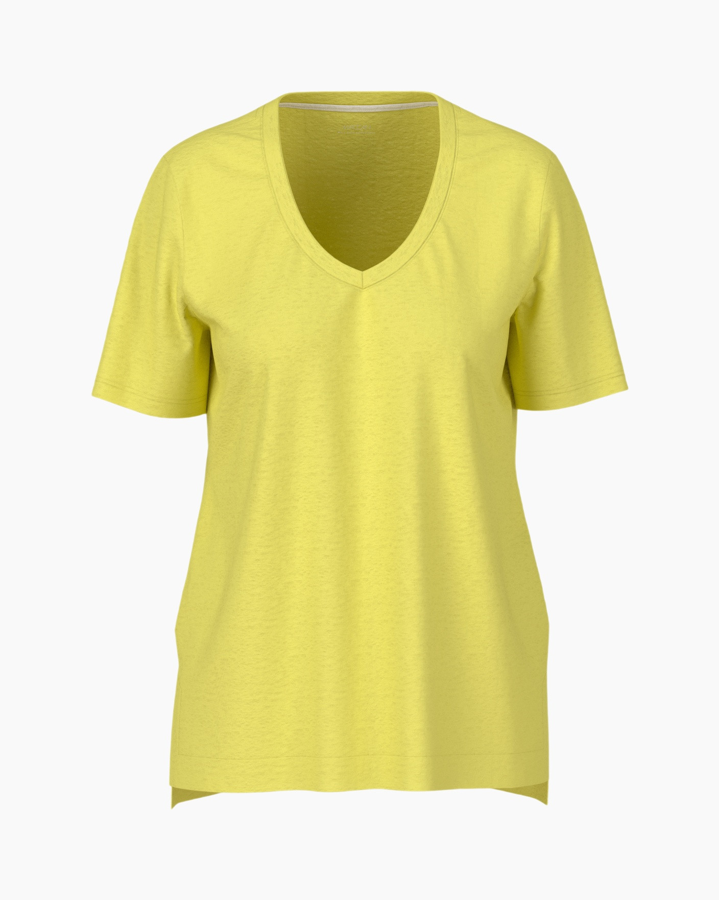 Dit T-shirt Yc 48.34 J54 Geel van Marc Cain Collections is een fijne aanwinst voor je garderobe. Je draagt dit T-shirt met korte mouwen lekker ruimvallend. De heldere gele kleur licht je gezicht op en de V-hals geeft een open look. De stof voelt luchtig en zacht aan op de huid. Achterop vind je een klein goudkleurig merkdetail bij de halslijn.