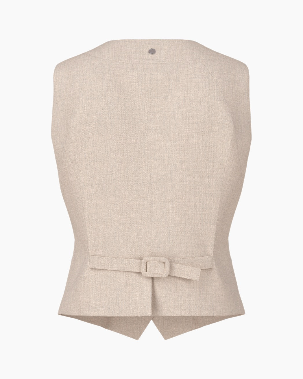 Combineer dit vest met een pantalon in dezelfde zandkleur voor een gecoördineerde look.