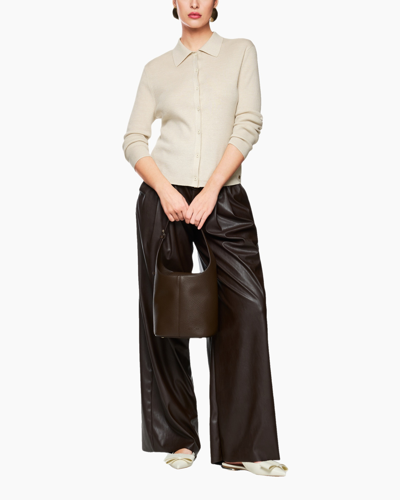 Combineer het vest met een pantalon met hoge taille of een jeans met rechte pijpen.