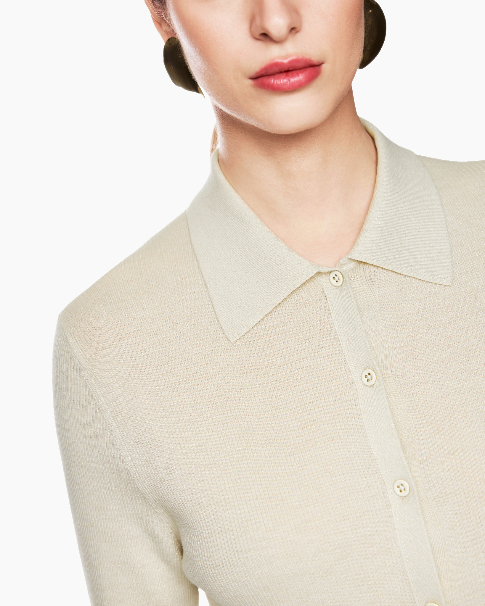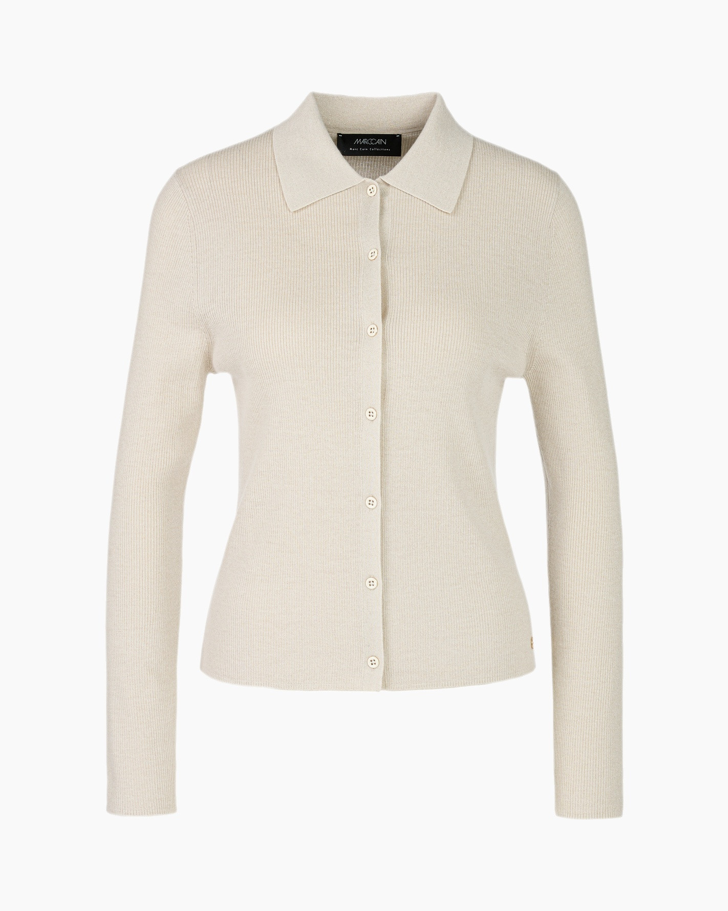 Het Vest Zc 39.04 M52 Off White van Marc Cain Collections is een veelzijdig kledingstuk dat je eenvoudig toevoegt aan je garderobe. Dit fijngebreide vest kenmerkt zich door een aangesloten pasvorm die je figuur subtiel volgt. De lichte crèmekleur geeft je veel combinatiemogelijkheden. Het vest heeft een klassieke polokraag en sluiting met kleine, ton-sur-ton knopen aan de voorzijde. De lange mouwen en de onderkant zijn afgewerkt met een geribbelde boord, wat zorgt voor een nette, afgewerkte look. Dit vest is een fijne basis voor verschillende looks.