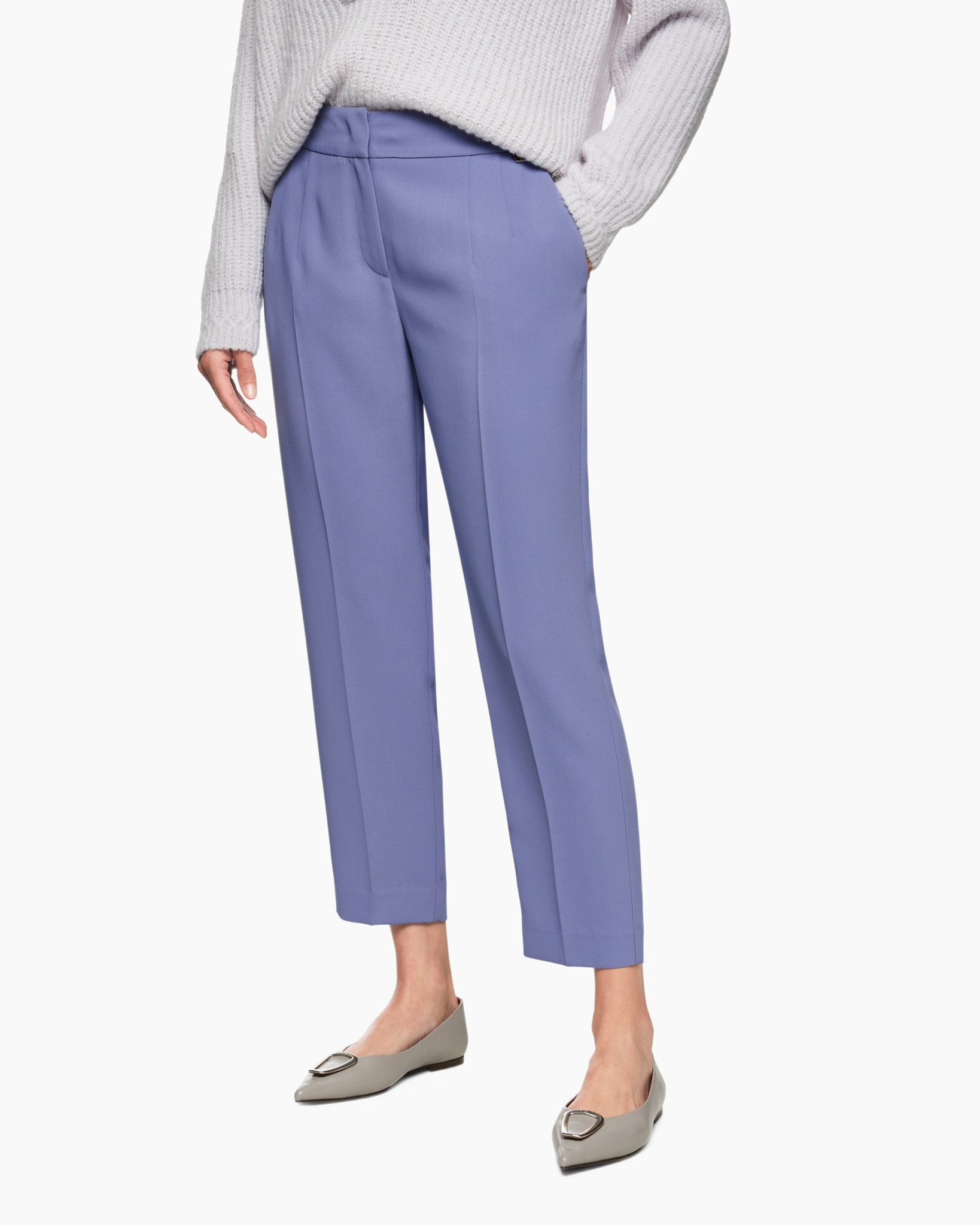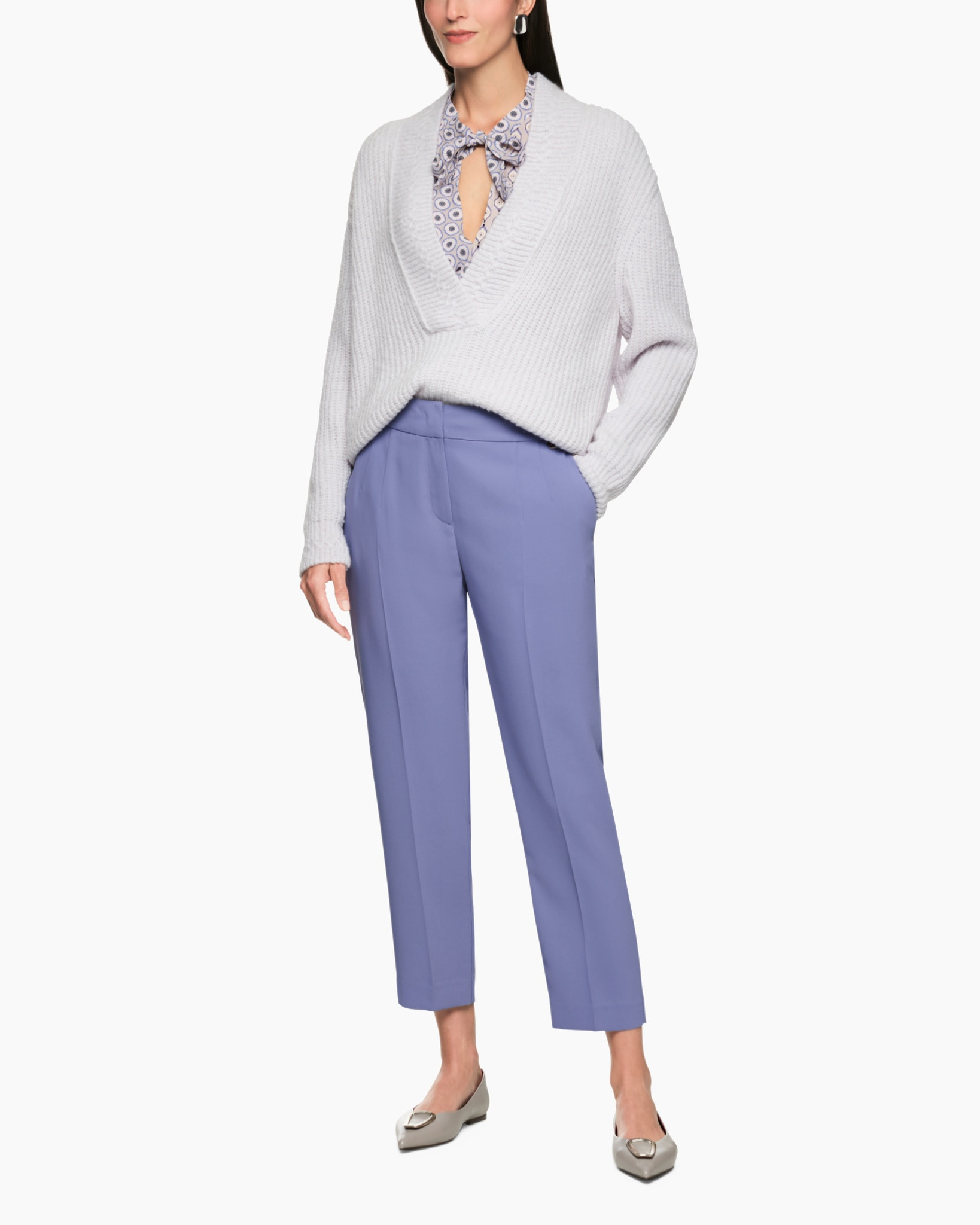 Combineer deze broek met een neutrale gebreide trui of een eenvoudige blouse en loafers voor een complete look.