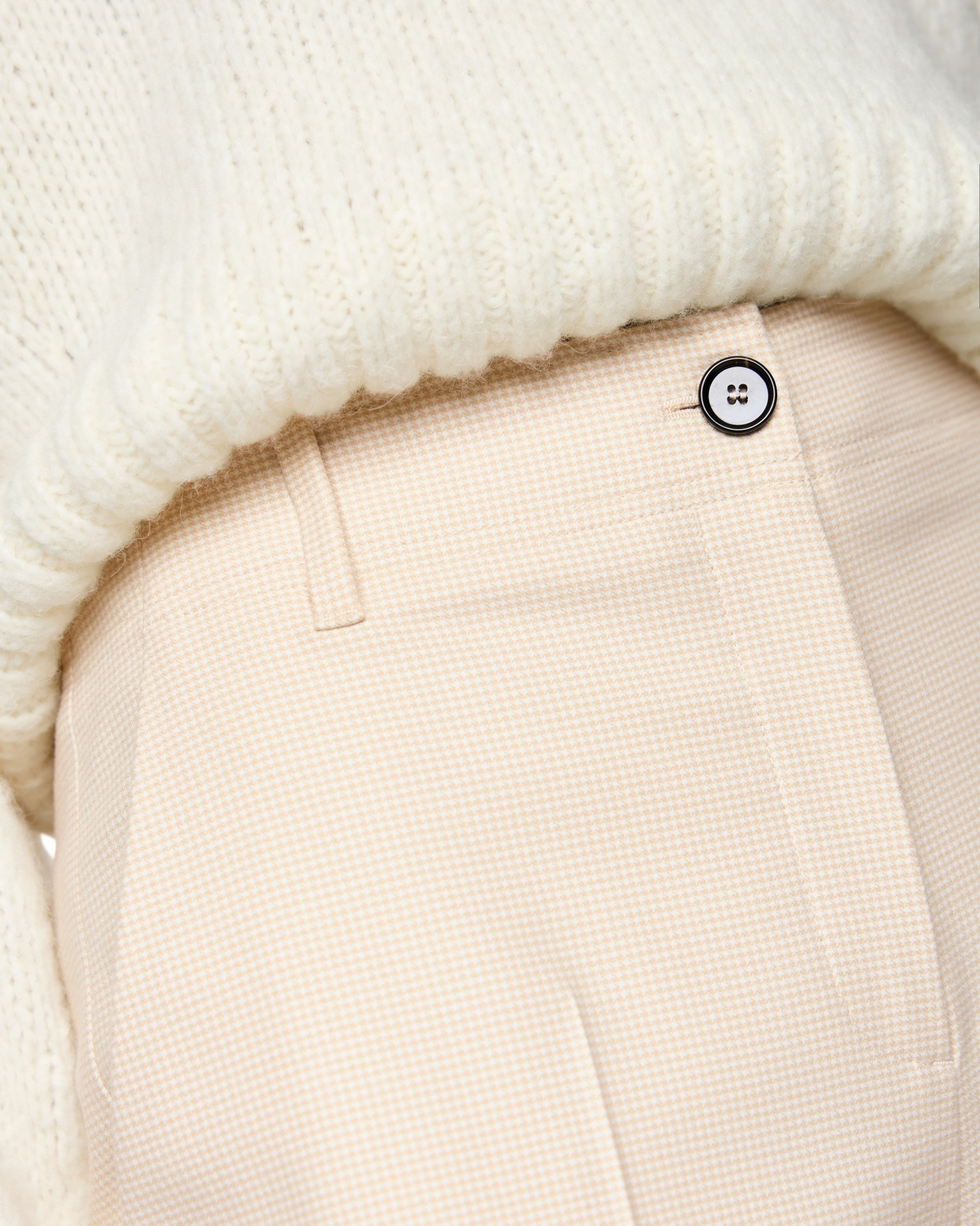 Je collectie vul je aan met de Broek Zp 81.17 W12 Licht Grijs van Marc Cain Pants, een veelzijdige broek die je basis vormt voor diverse looks. Deze broek toont een prachtige crèmekleur en valt direct op door de fijne, subtiel geweven textuur die de stof een rijke uitstraling geeft. Je ervaart een hoog draagcomfort door de relaxte pasvorm en de prettige hoge taille die je figuur flatteert. De rechte pijpen reiken tot net boven de enkel, wat je lengte geeft en een vlotte touch biedt. Voorop accentueren scherpe persplooien de verticale lijn van de broek. Aan de zijkanten vind je praktische steekzakken. De sluiting voorop is verborgen met een rits en een haakje. Achter zijn twee paspele zakken slim weggewerkt, die de cleane look niet onderbreken.