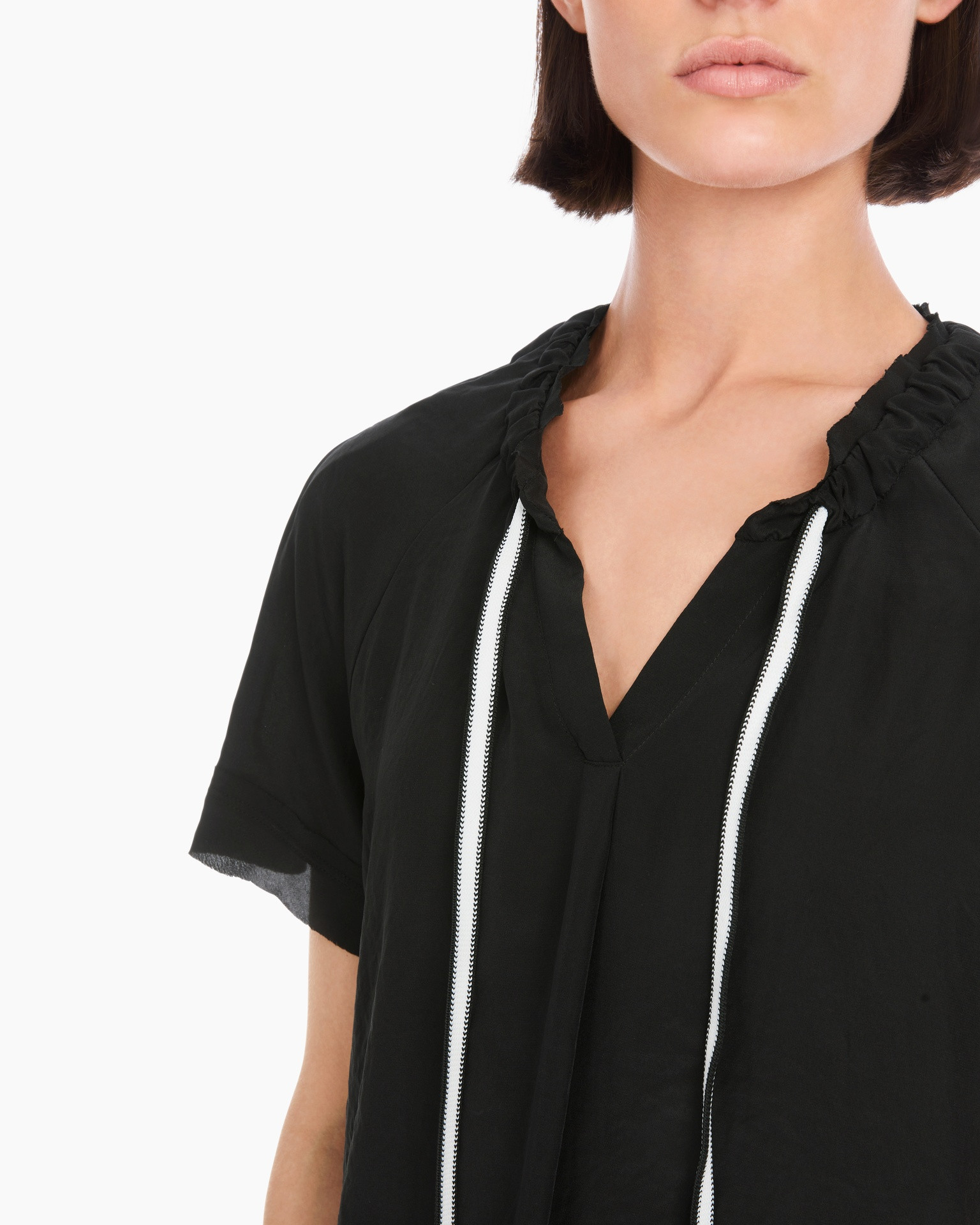 - V-hals met trekkoordsluiting