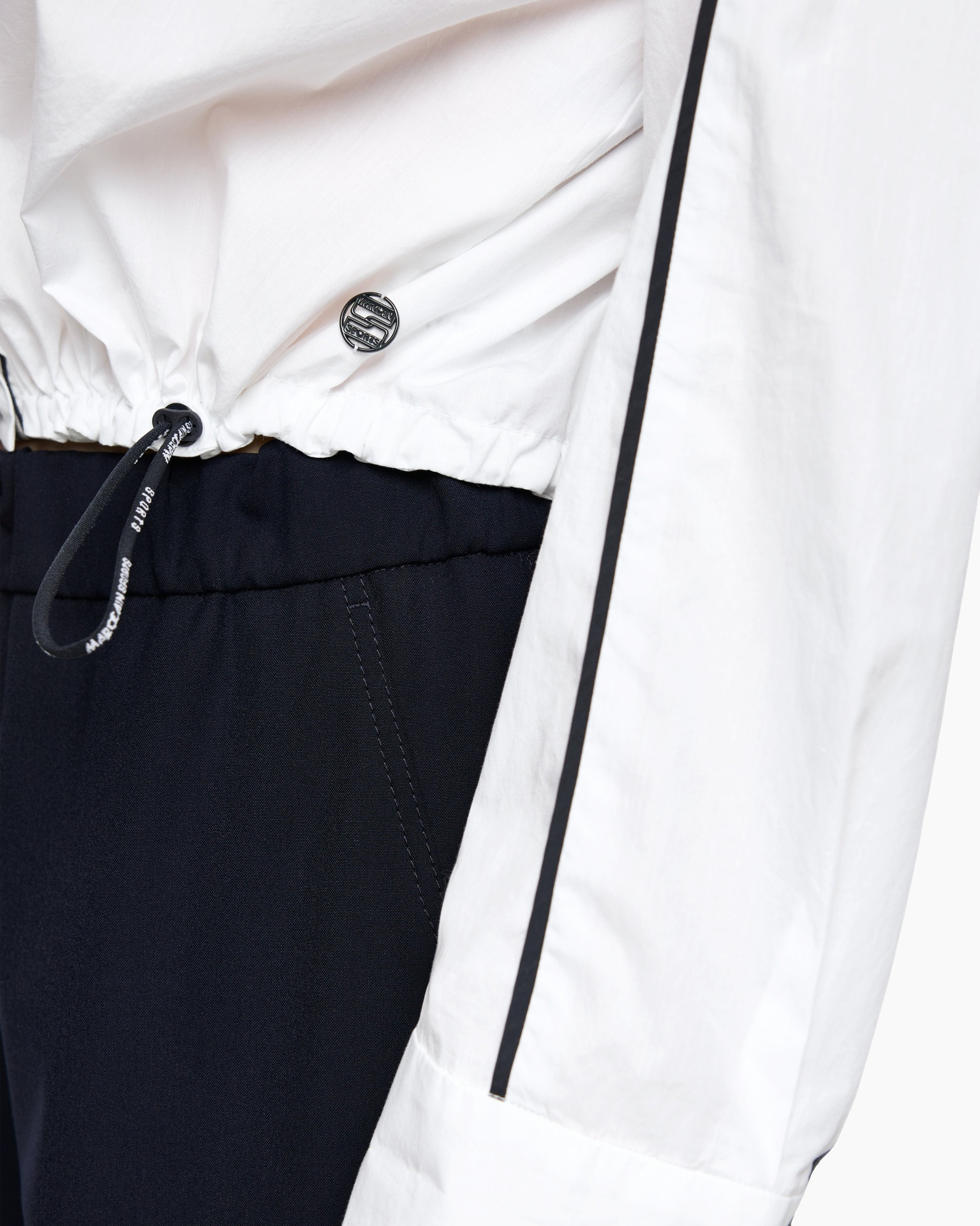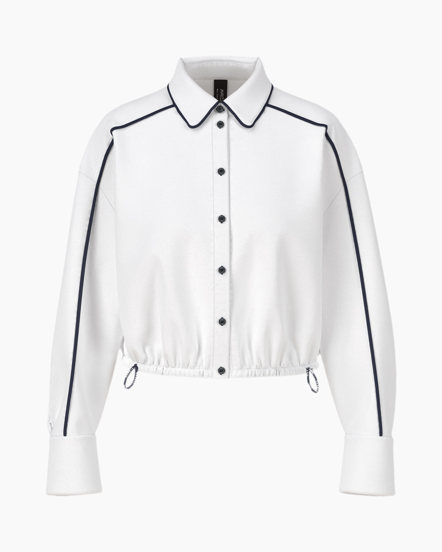 De blouse is gemaakt van een soepele stof die heerlijk aanvoelt op de huid. De blouse is voorzien van een kraag en een knoopsluiting. Opvallend is de rits aan de voorzijde. Zwarte piping accentueert de lijnen van de blouse. Met het koord aan de onderkant kun je de pasvorm aanpassen. Het subtiele Marc Cain Sports logo is zichtbaar op de mouw.
