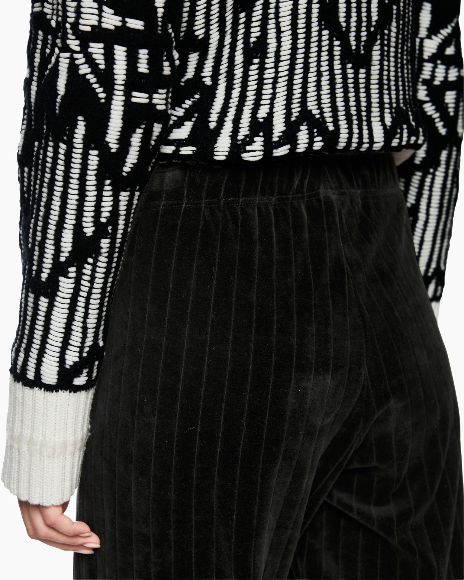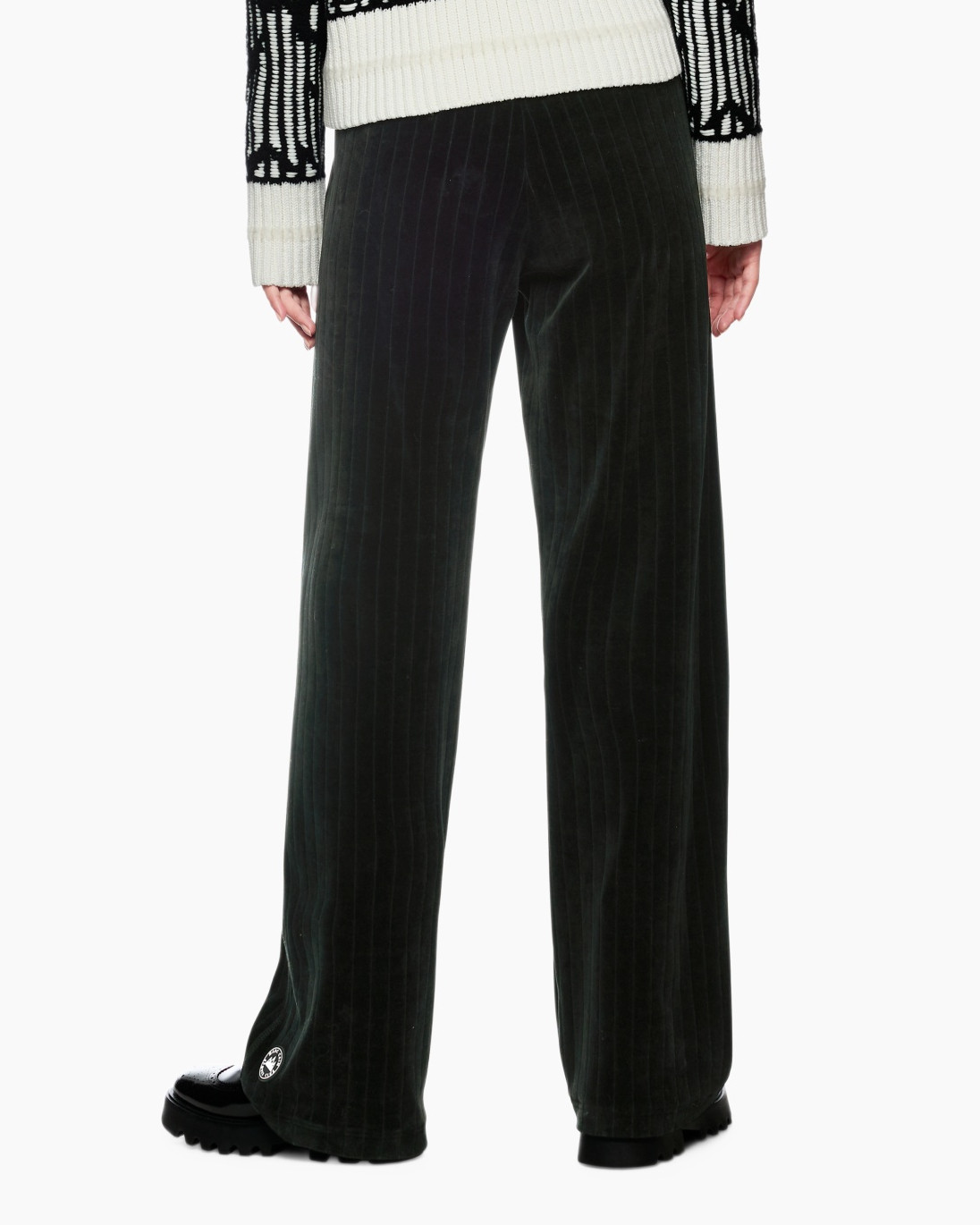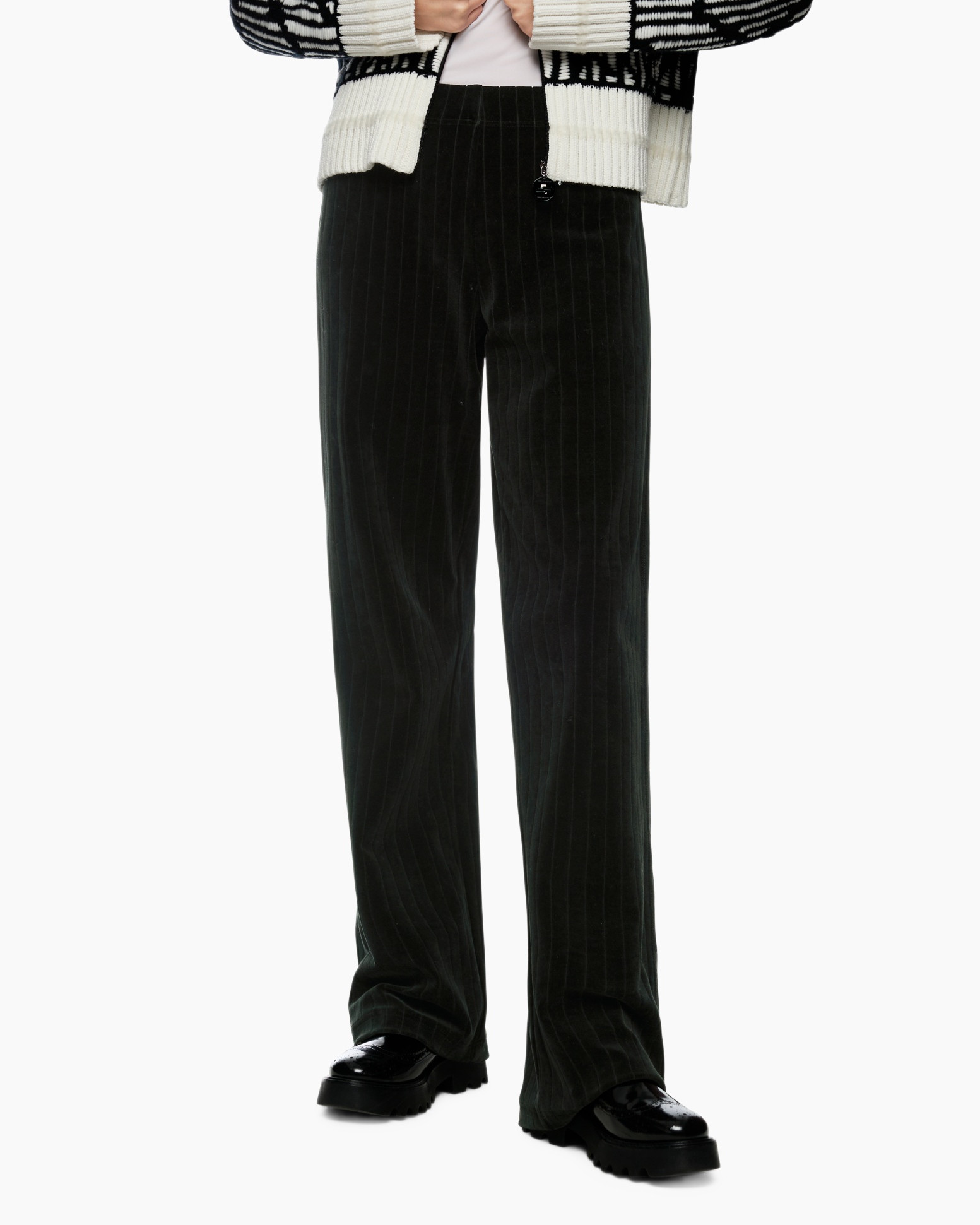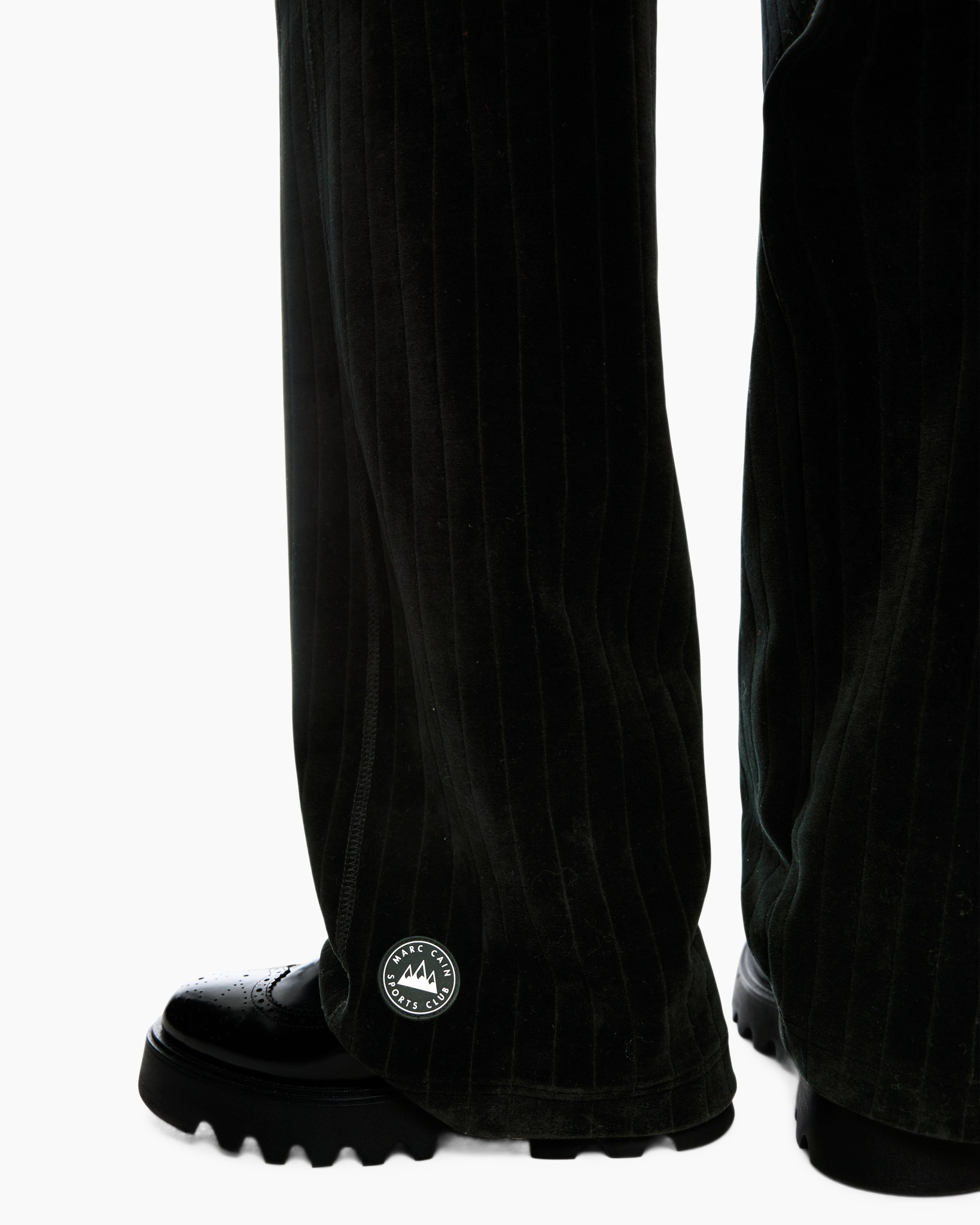 Maak kennis met de Broek Zs 81.48 J70 Zwart van Marc Cain Sports, een comfortabele broek die je garderobe compleet maakt. Deze broek valt soepel om je heen dankzij de relaxte, rechte pasvorm. De diep donkergroene ribfluwelen stof geeft de broek een zachte uitstraling met subtiele verticale strepen. Je ziet een opvallend en clean design, zonder zichtbare zakken of knopen aan de voorkant. Dit zorgt voor een ononderbroken lijn die goed aansluit op je figuur. Een veelzijdig item dat je makkelijk combineert.