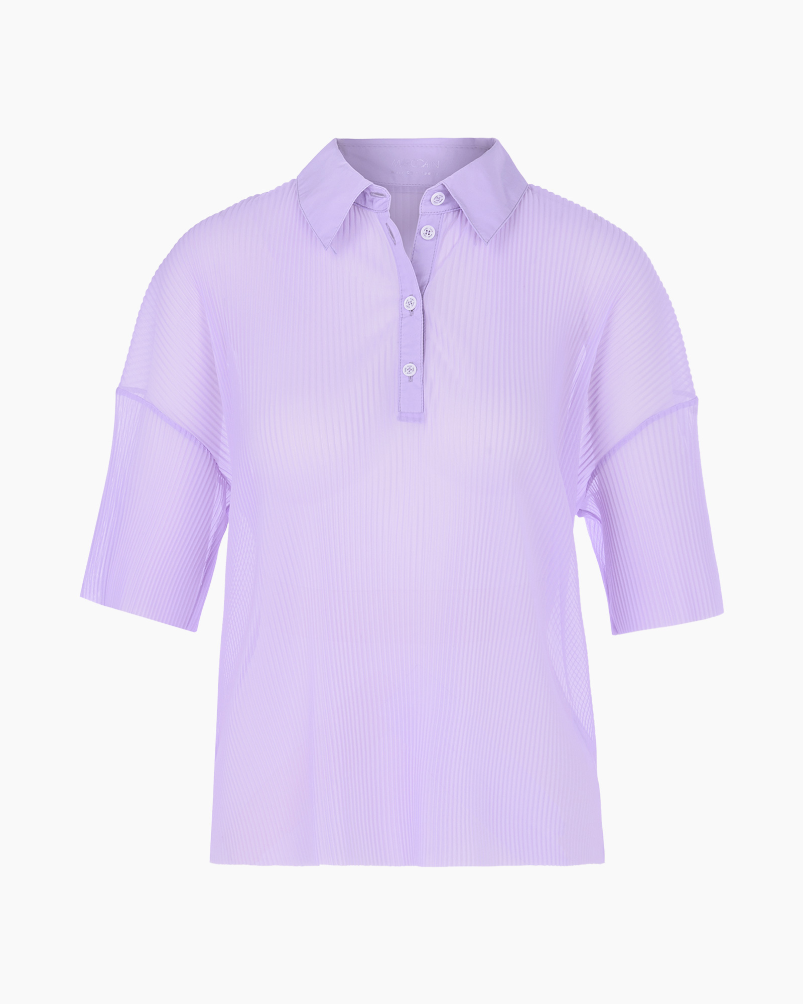Polo Ys 53.19 J49 midden paars belichaamt de moderne vrouw van nu met zijn verfijnde pasvorm en uitgesproken kleur. Marc Cain Sports presenteert een poly-gaas poloshirt in een stijlvolle middellange snit, perfect voor een casual-chique look.