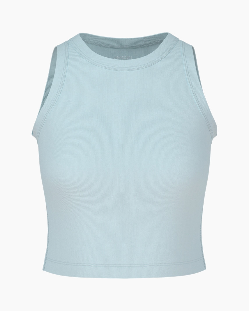 Mouwloze en cropped top in de trendy Y2K (Year 2000) stijl. Het model is gemaakt van stretchy ribkatoen en afgewerkt met opvallende biesjes. De snit is atletisch en wordt gedefinieerd door een wijd armsgat en een relatief hoge halslijn. Een essentiële basic.