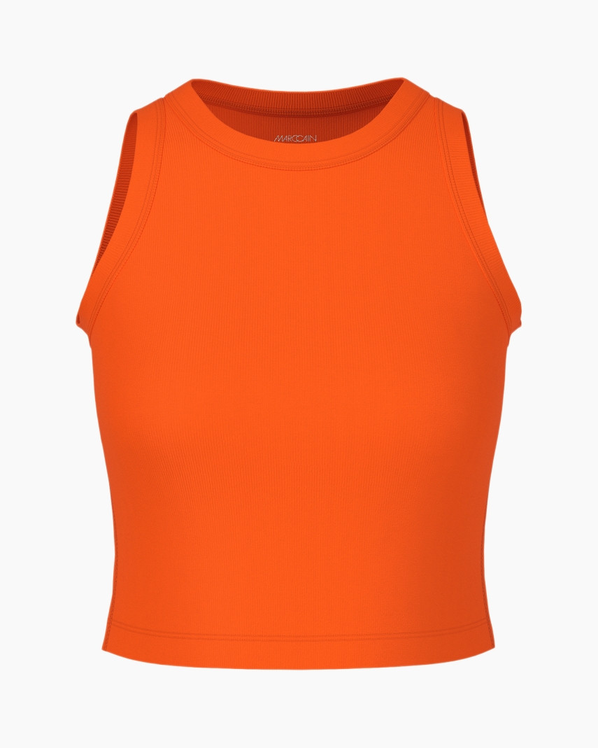 Mouwloze en cropped top in de trendy Y2K (Year 2000) stijl. Het model is gemaakt van stretchy ribkatoen en afgewerkt met opvallende biesjes. De snit is atletisch en wordt gedefinieerd door een wijd armsgat en een relatief hoge halslijn. Een essentiële basic.