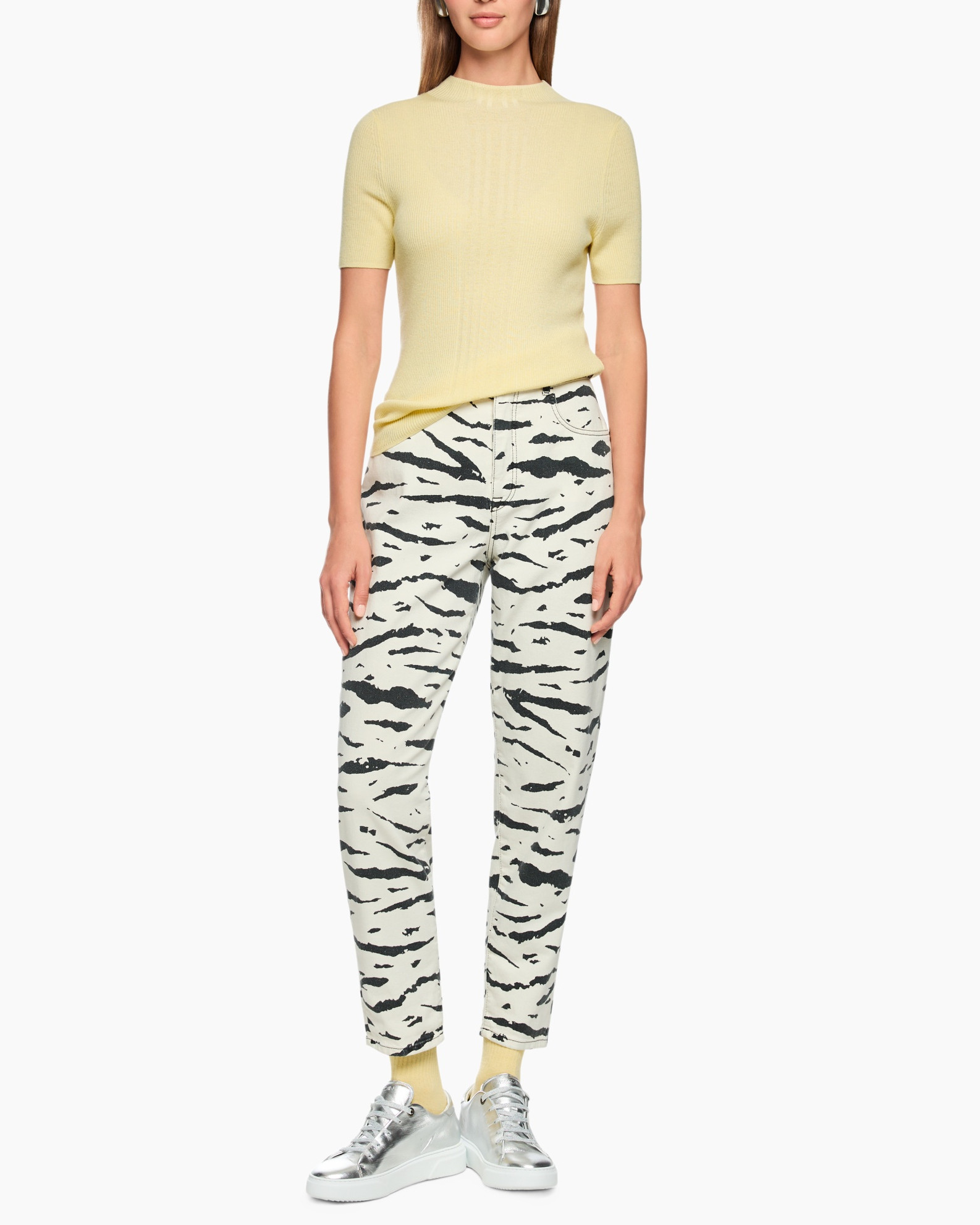 Combineer de trui met een high waist pantalon of draag hem op een wijde spijkerbroek.