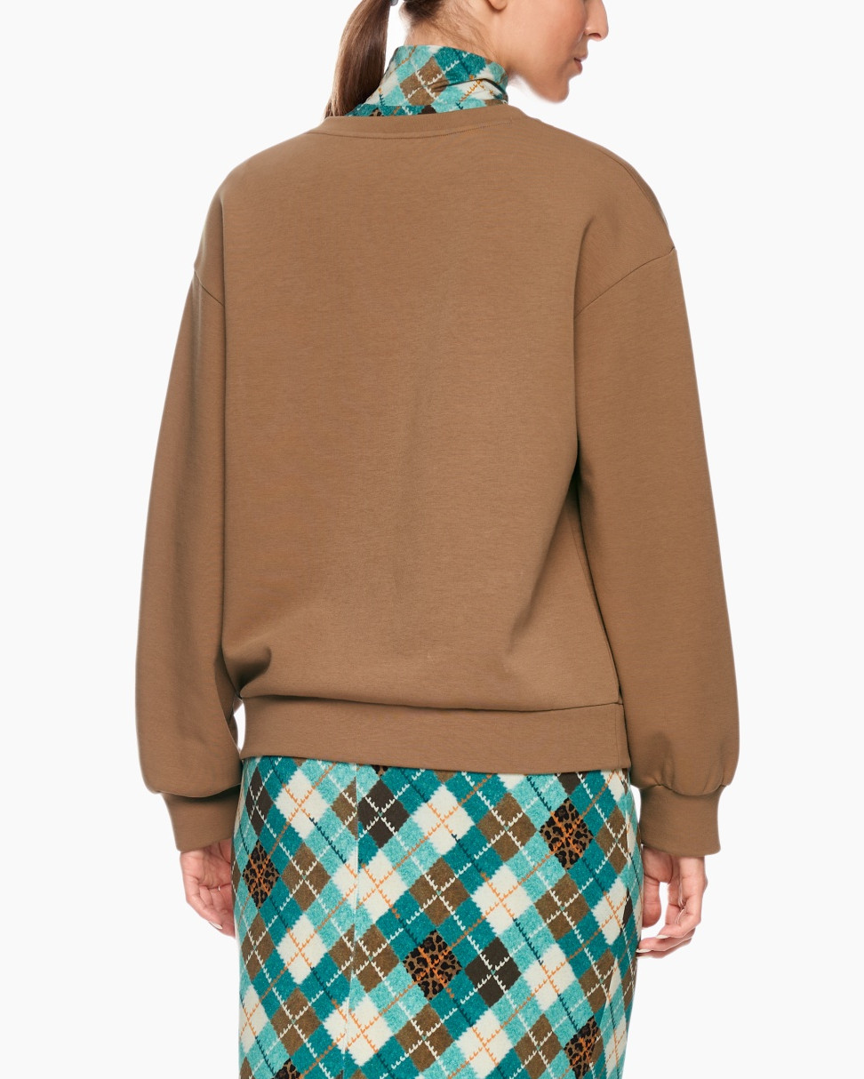Draag deze trui met een effen broek in een neutrale kleur of een jeans, gecombineerd met sneakers.