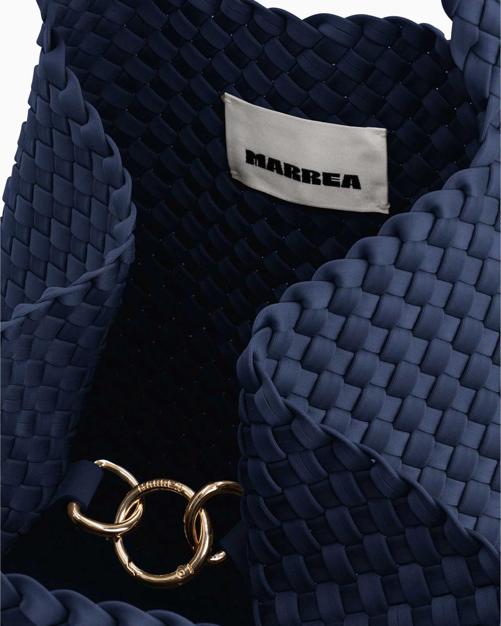 Shopper Medium Blauw van Marrea is een ruime tas die je elke dag met plezier gebruikt. Het gevlochten materiaal in een diepblauwe kleur geeft de tas een sprekend uiterlijk. Je bergt je spullen veilig op in de binnenzak die je sluit met de trekkoorden aan de zijkant. De stevige handvatten zorgen ervoor dat je de tas prettig in de hand of over de arm draagt.