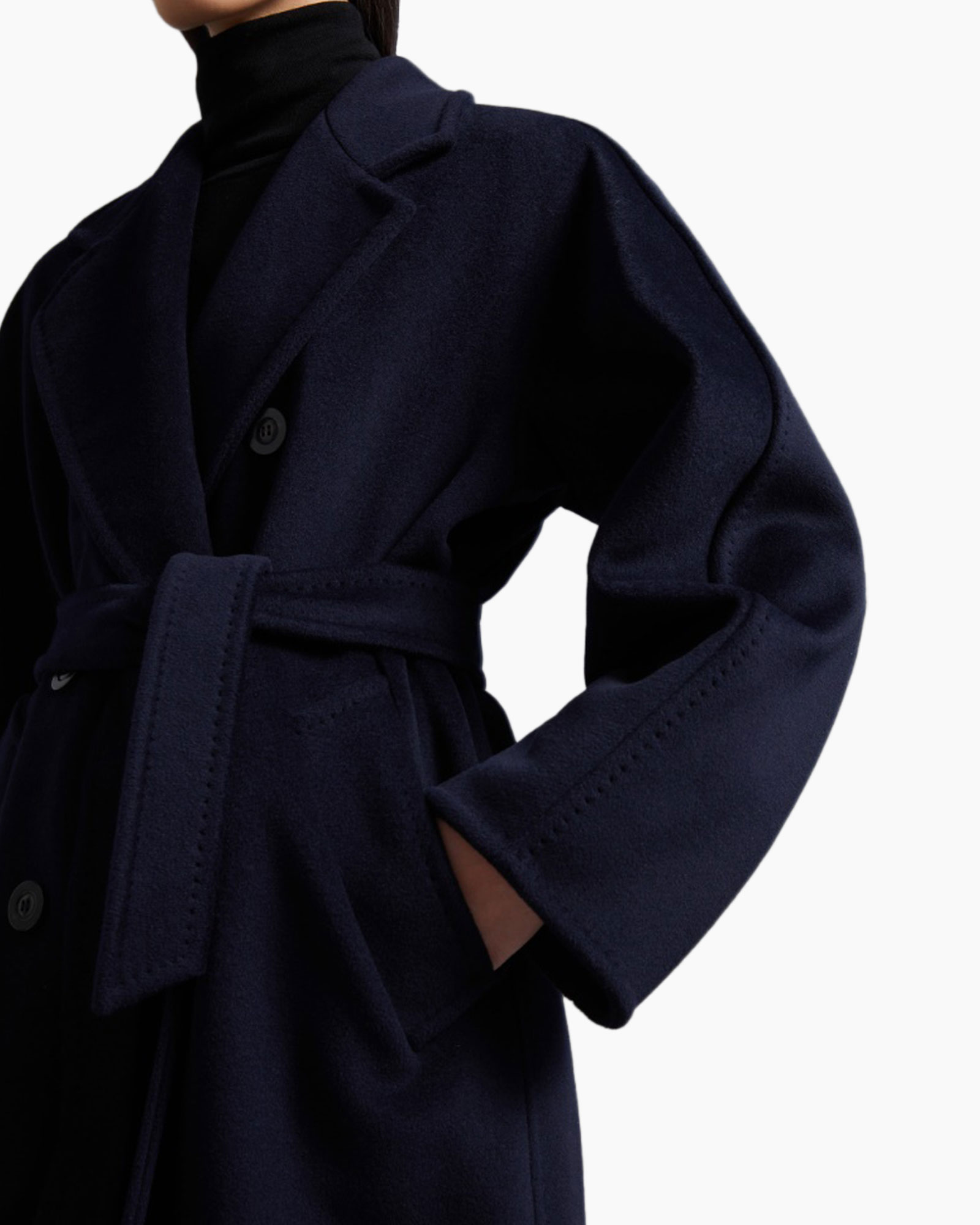 Wil je een investering doen waar je jaren plezier van hebt, dan is de Mantel Madame Donker Blauw van Maxmara de perfecte keuze. Je ziet direct de sterke, lange lijn van deze mantel, die ruim en recht valt over het lichaam. De diepe, donkerblauwe kleur is krachtig en de dubbele rij knopen geeft de jas een klassieke uitstraling. De brede reverskraag en de subtiele steekzakken aan de zijkant maken de look af.