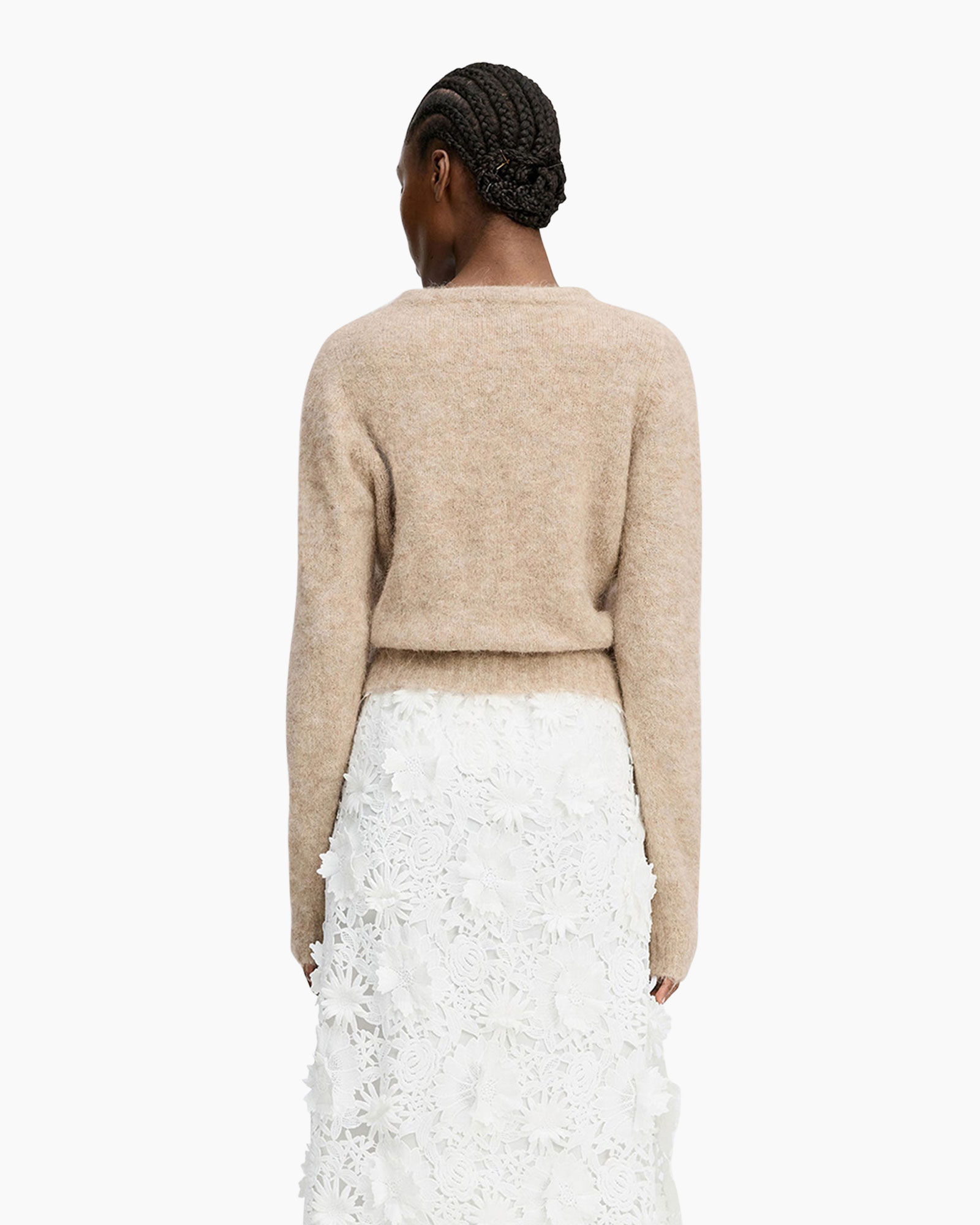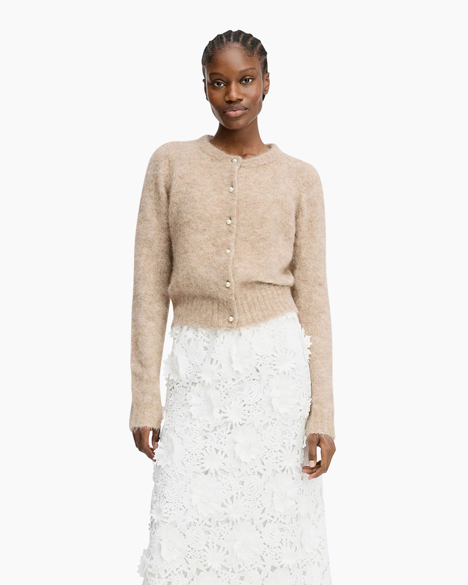 Draag dit vest dichtgeknoopt op een hoge taille pantalon of open over een aansluitende top met een lange rok.