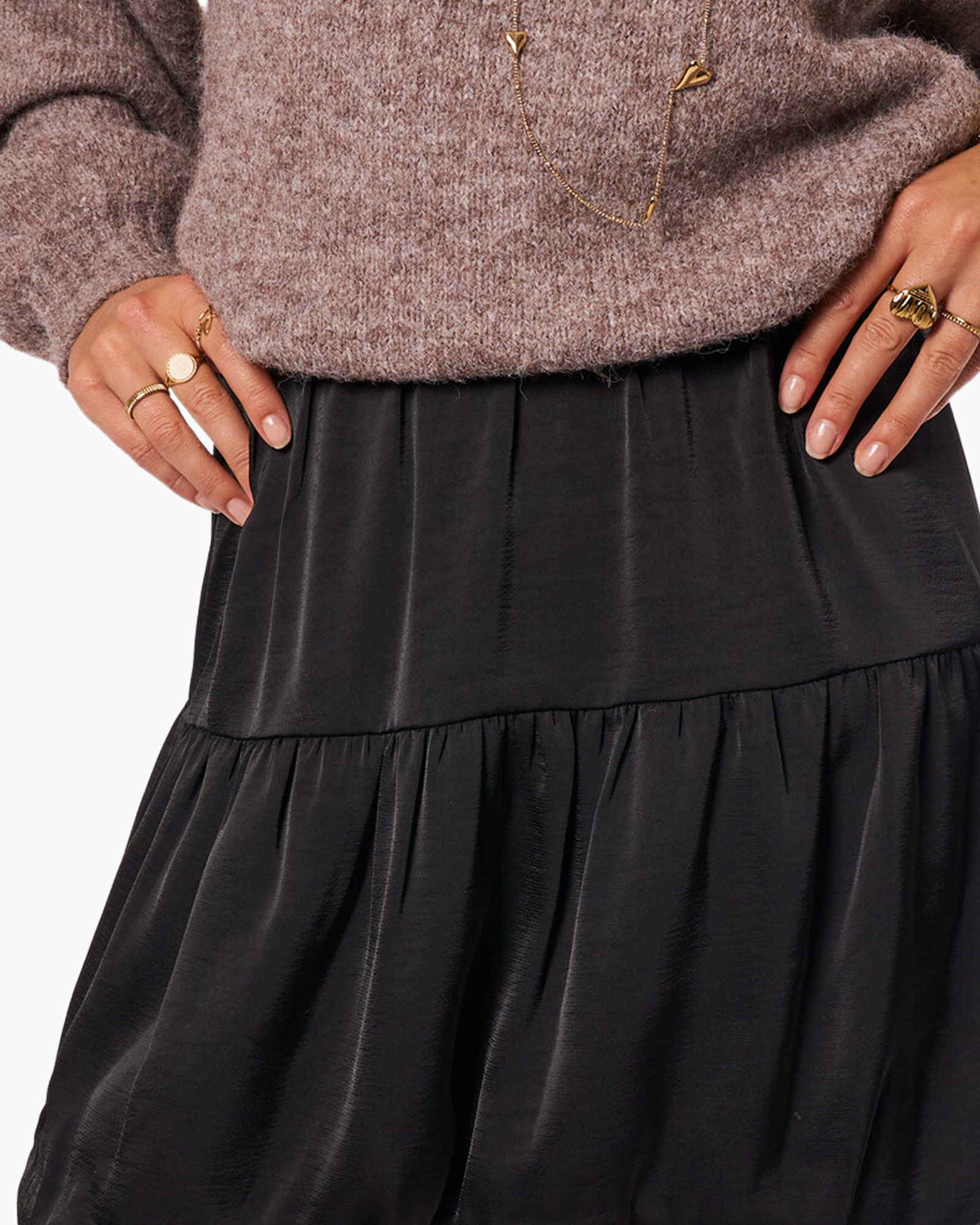 Upgrade je wardrobe met de zwarte Satin Balloon Skirt van My Jewellery en geef je outfit direct die fashion-forward vibe. De glanzende satijnlook zorgt voor een luxe feel, terwijl het unieke ballon-effect voor extra volume en een playful silhouette zorgt. Style 'm voor een night out met high boots, of creëer een edgy contrast door 'm te dragen met een oversized chunky knit. Deze rok is de perfecte mix van classy en cool. Get ready to shine, babe!