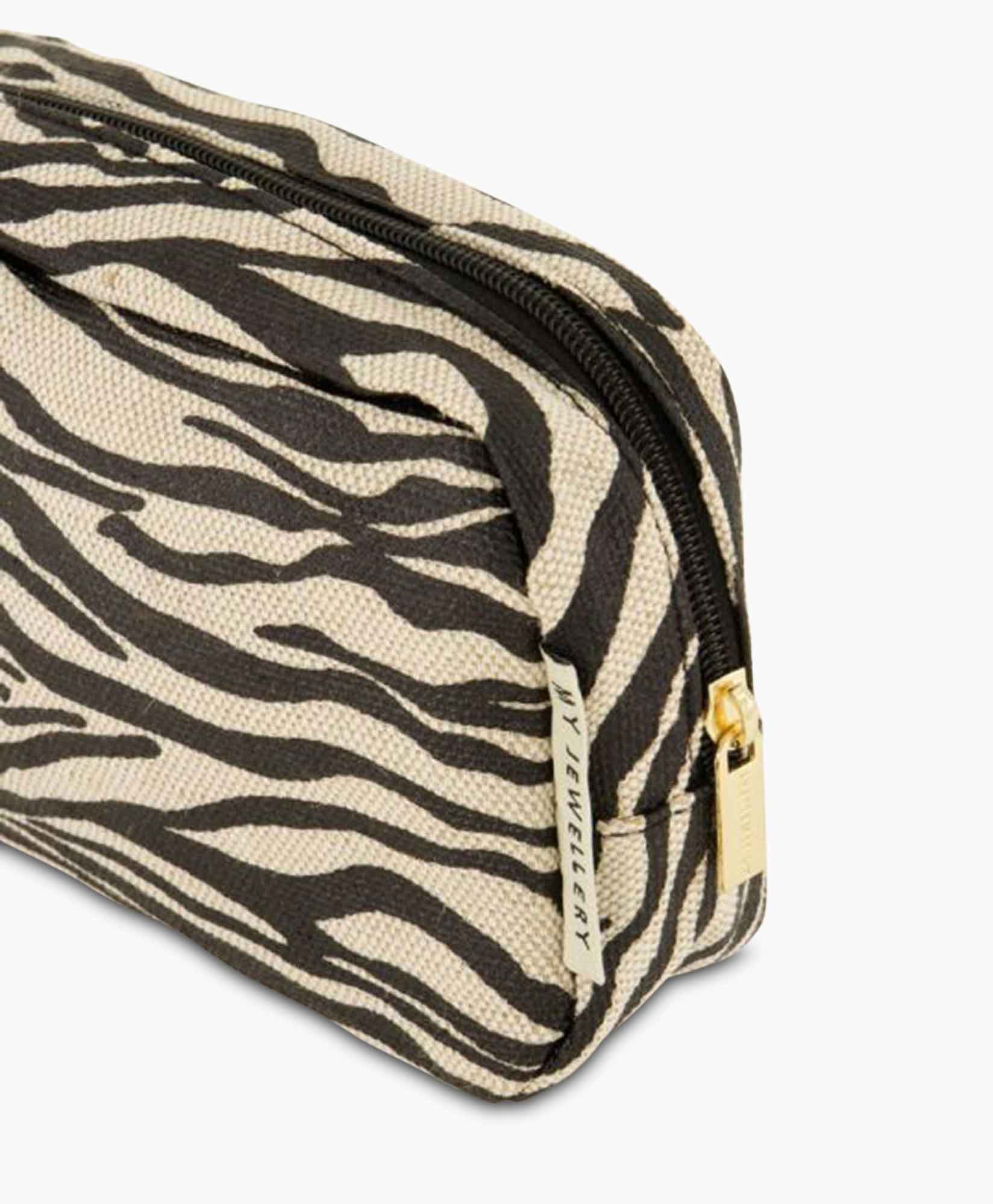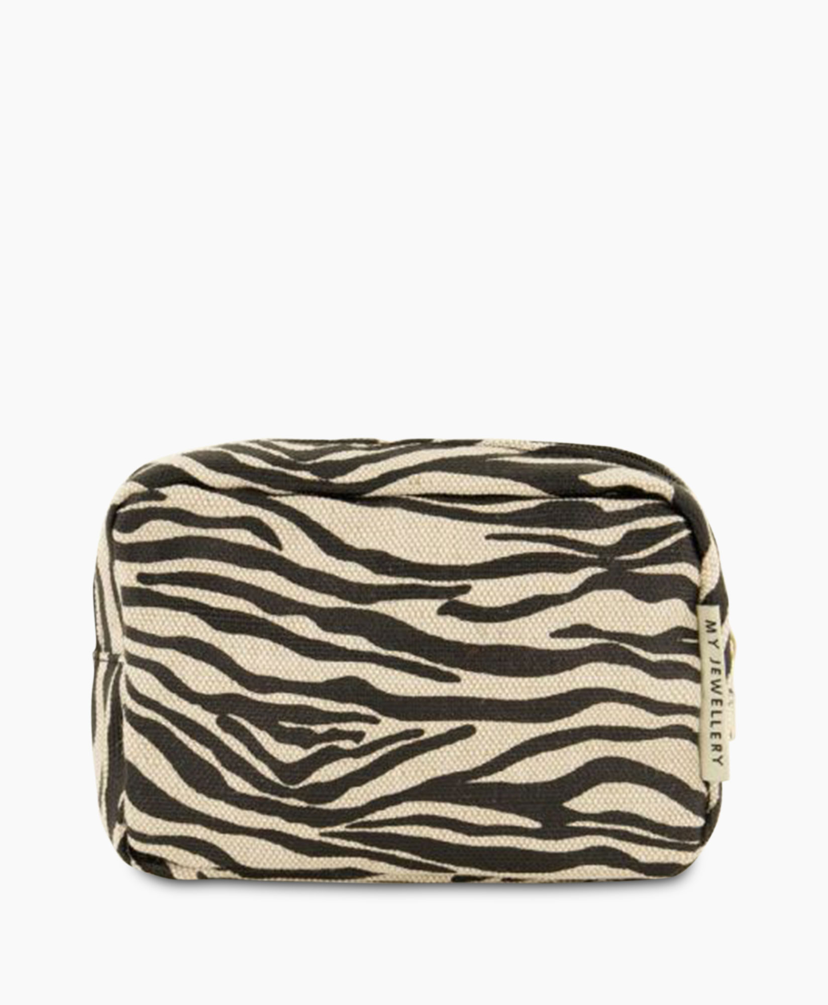 Wild adventures start here! Geef je daily routine een fierce upgrade met dit zebra tasje van My Jewellery. De gedurfde print zorgt direct voor die gewilde edgy feel in je tas. Of je 'm nu gebruikt voor je essentials of als classy make-up bag, dit item straalt pure confidence uit. Check ook het iconische label aan de zijkant met de tekst 'MY JEWELLERY' voor de finishing touch. Draag 'm in een transparante shopper voor een bold statement. Own your style!