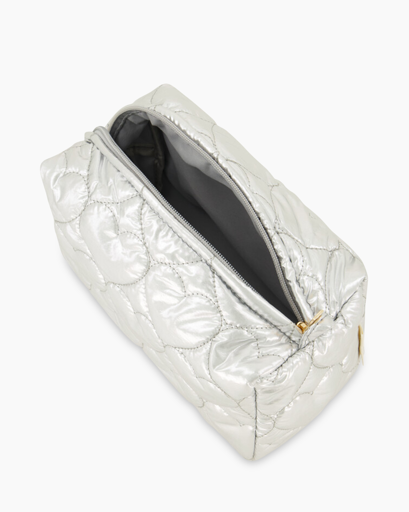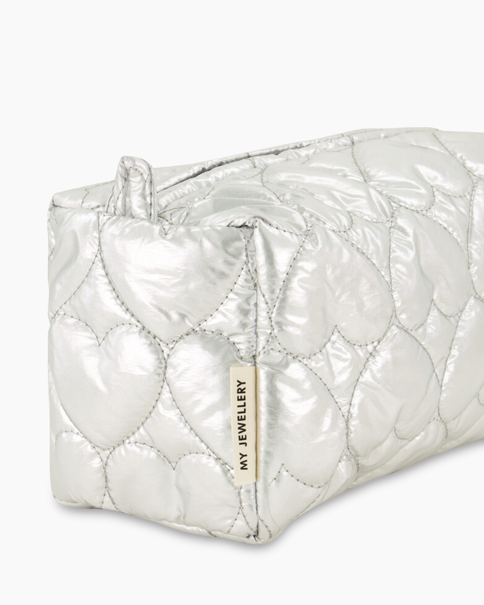 Give your beauty essentials de upgrade die ze verdienen met de Toiletbag Big Silver Hearts van My Jewellery. Deze zilveren eyecatcher met een all-over hartjespatroon geeft je daily routine direct een edgy feel. Dankzij het padded design blijven al je favoriete items safe én stylish opgeborgen. Match 'm met je favoriete zilveren sieraden voor een complete metallic look of laat 'm shinen op je kaptafel voor instant good vibes. Ready to sparkle? Scoor deze musthave bij Van Dijk!