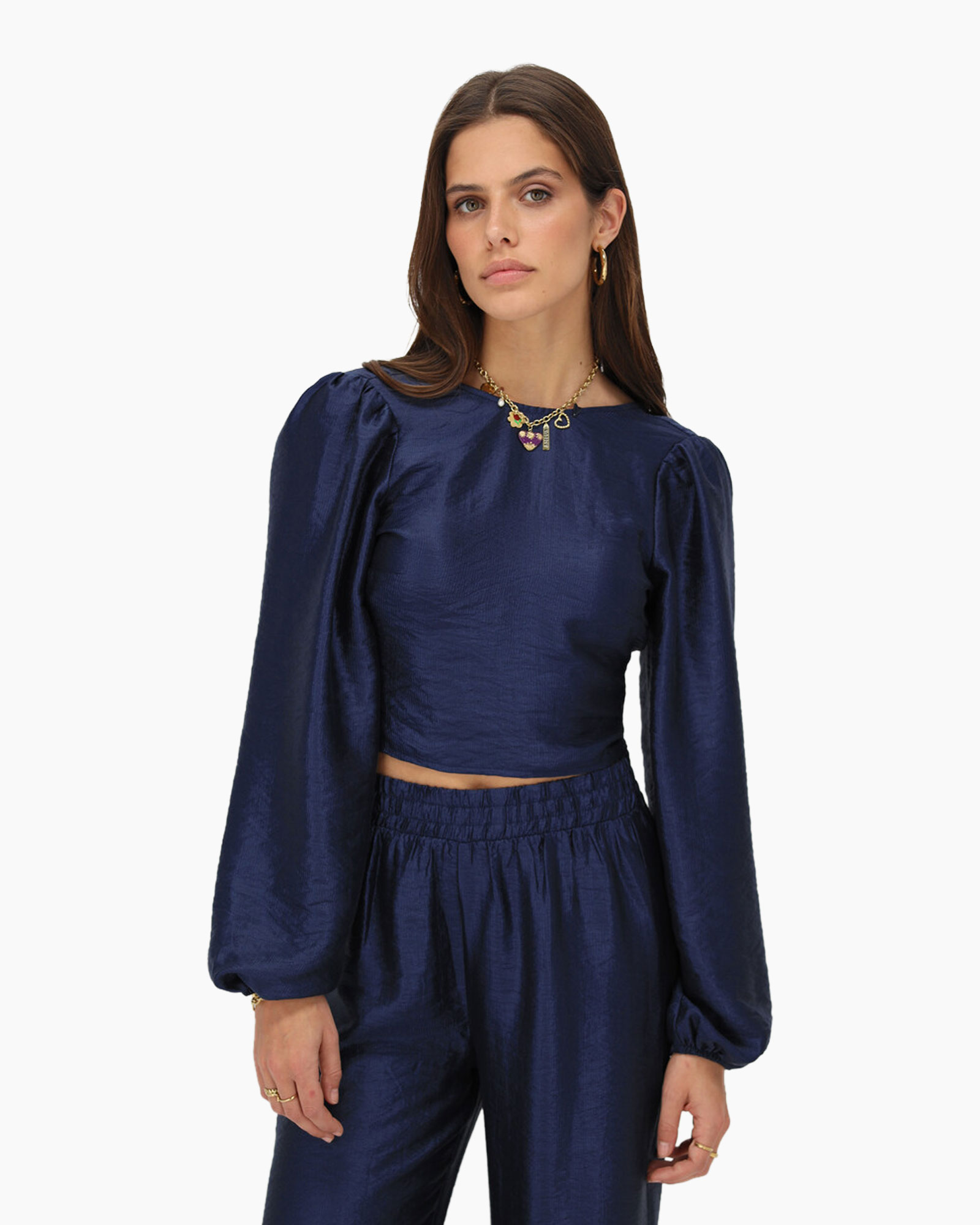 Stralen was nog nooit zo effortless met deze navy blauwe top van My Jewellery. De subtiele shimmer en de voluminous mouwen geven je outfit direct een high-end upgrade. Maar de echte eyecatcher? Dat is de open rug met de schattige strik voor een playful twist. Draag 'm als co-ord met de bijpassende pantalon voor een classy event of style 'm met een stoere denim voor die perfecte edgy feel. Laat jouw zelfvertrouwen de vrije loop en shine all day. Get yours now!
