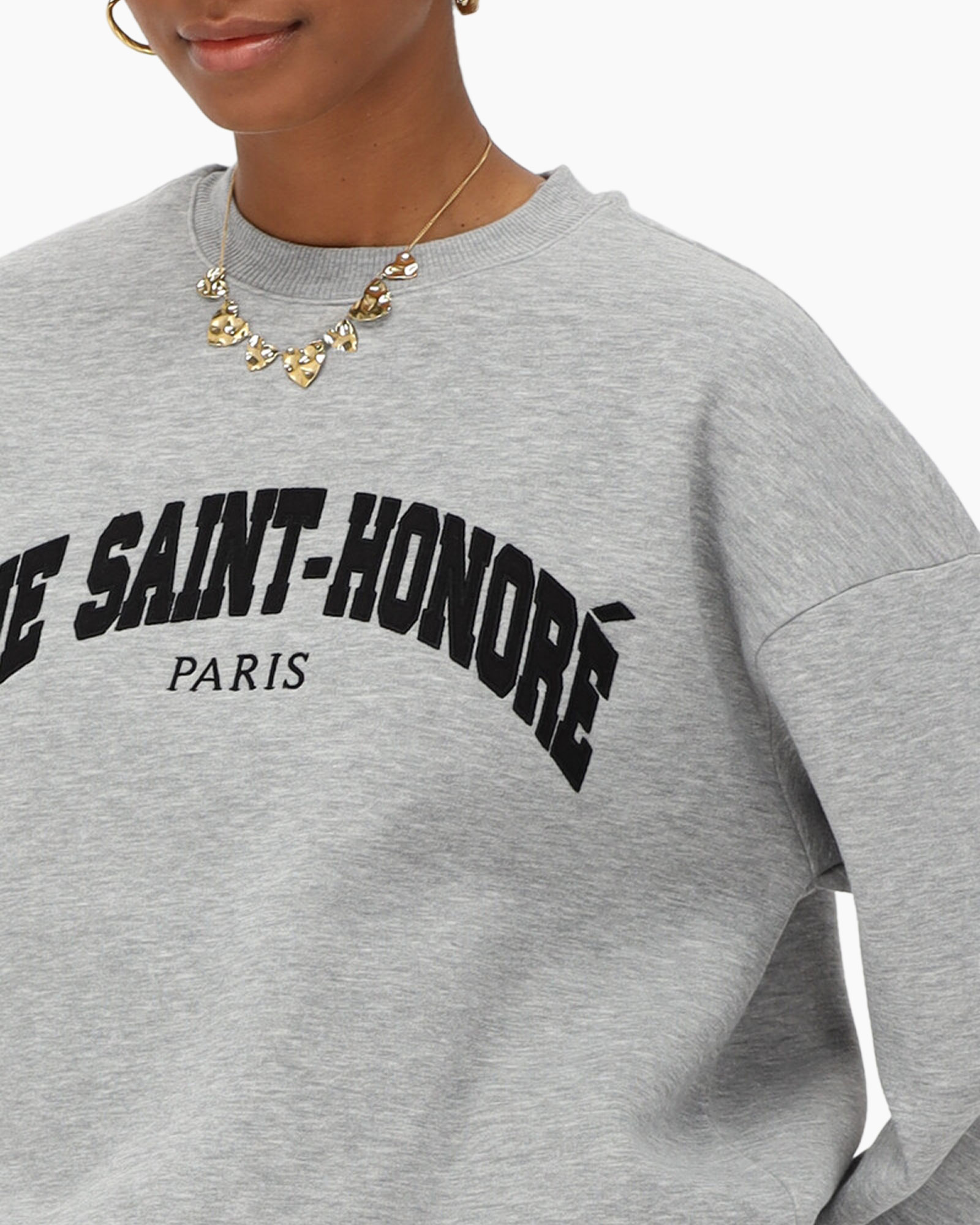 Upgrade je wardrobe met deze grijze My Jewellery trui voor de ultieme cool-girl look. De zwarte tekst 'RUE SAINT-HONORÉ PARIS' op de voorzijde geeft je outfit meteen die Parisian vibe. Deze sweater is perfect voor die comfy days waarop je er toch fashionable uit wilt zien. Draag 'm met een baggy jeans voor een relaxte streetstyle of combineer met een skort voor een girly touch. Ready to shine? Shop deze must-have nu bij Van Dijk Store!