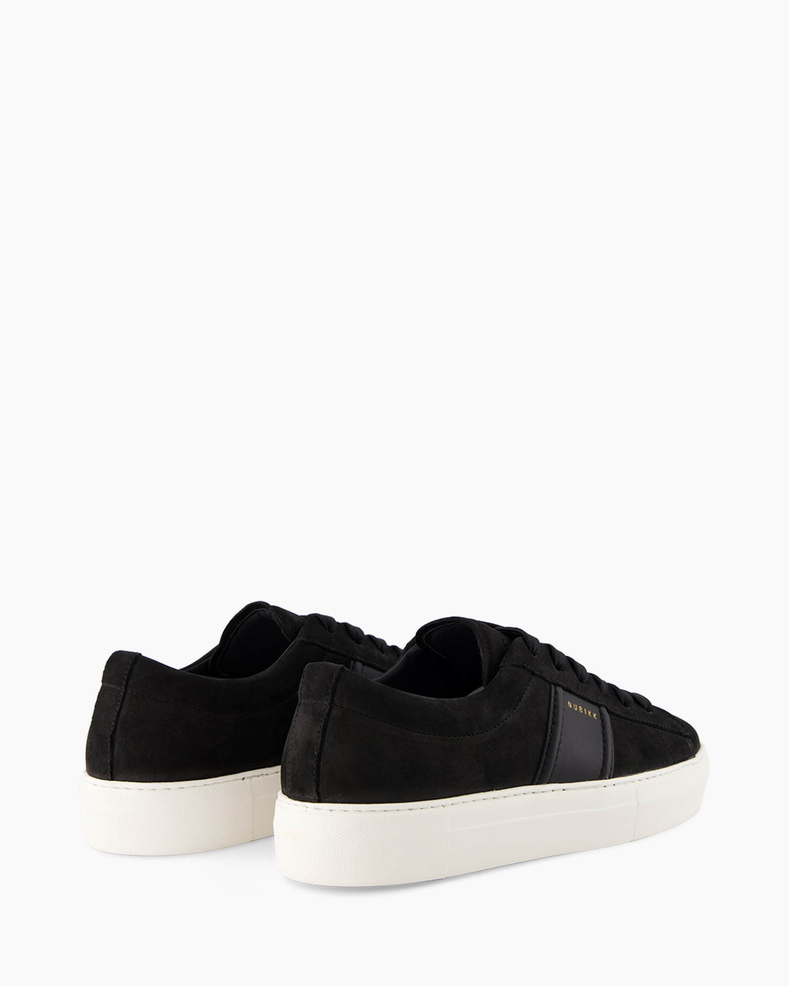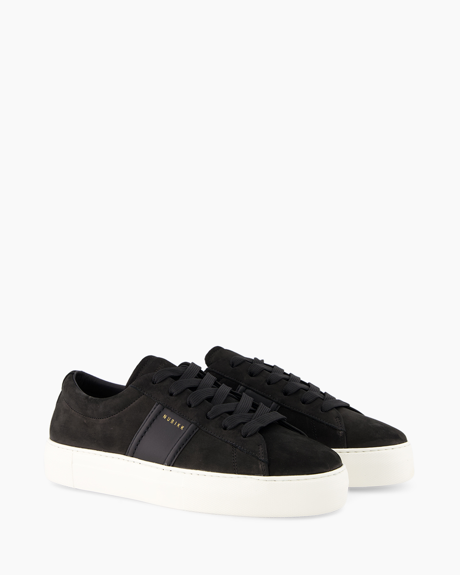 Ben je op zoek naar een veelzijdige schoen die jouw garderobe aanvult? Dan is de Sneaker Jagger Morris 2 Zwart van Nubikk een uitstekende keuze. Deze sneaker valt op door zijn diepzwarte bovenwerk, gemaakt van een zachte suède-achtige stof. De zwarte veters passen daar goed bij en zorgen voor een strak uiterlijk en een uniforme look. Op de tong zie je duidelijk het merk Nubikk in goudkleurige letters, wat een subtiel contrast vormt. Een opvallend detail is de donkere verticale baan aan de zijkant, die de sneaker een eigen karakter geeft en de strakke lijnen benadrukt. De robuuste zool in een lichte tint contrasteert mooi met het bovenwerk en zorgt voor een stevige basis, wat bijdraagt aan het draagcomfort.