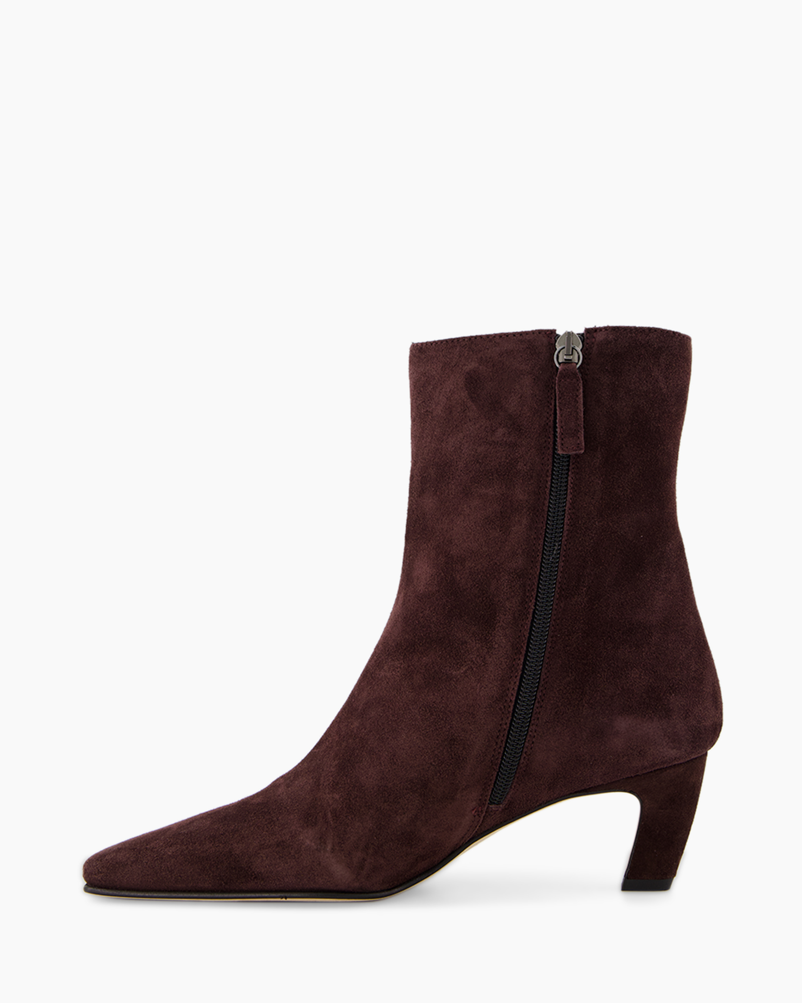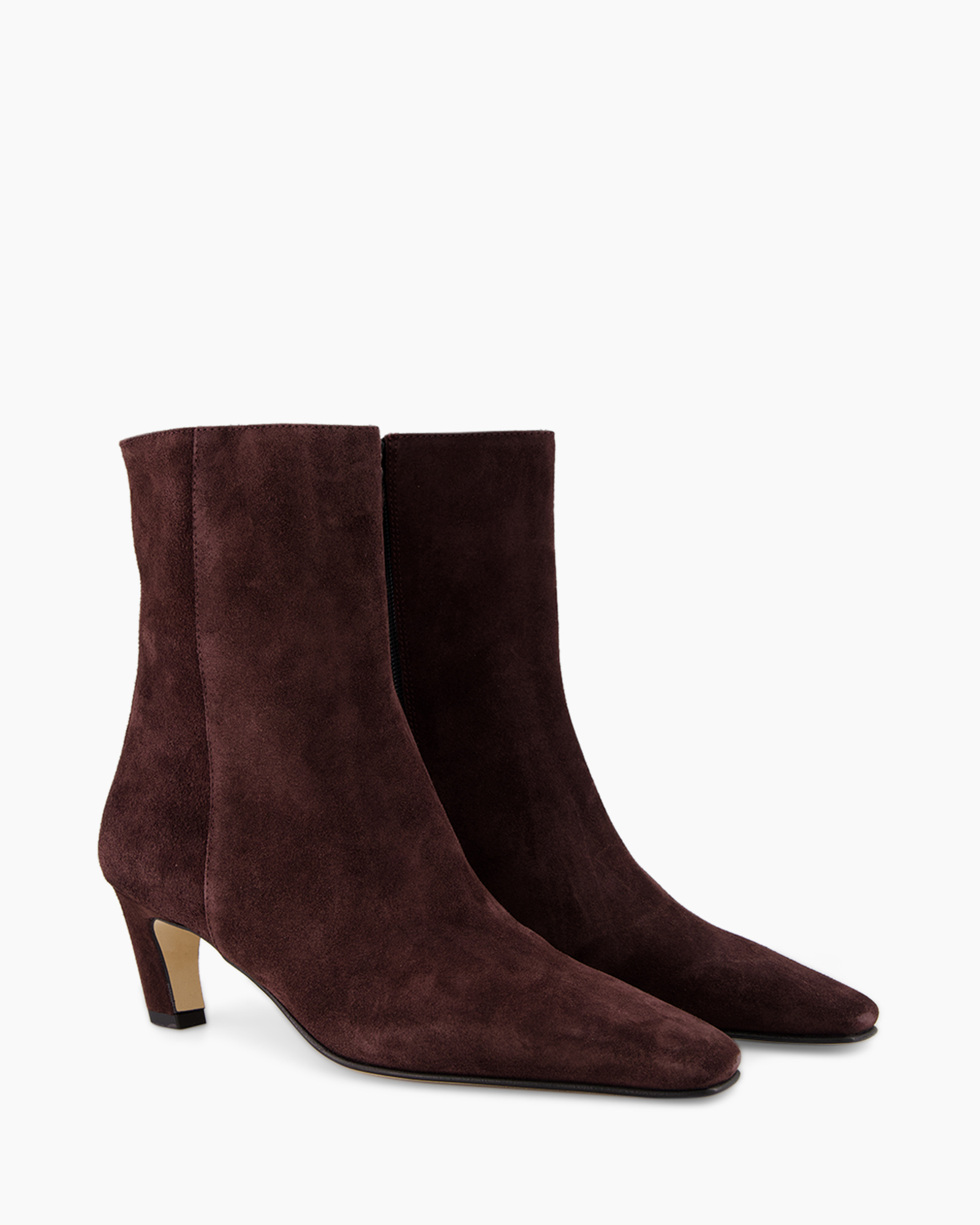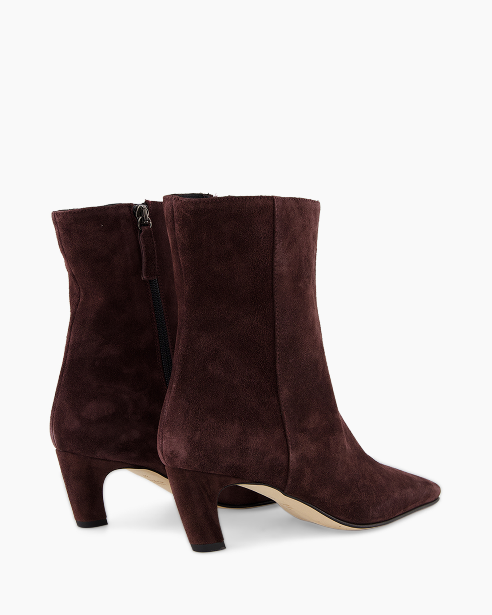 Enkellaars Phaedra Senory Donker Bruin van Odare biedt een elegante en verfijnde look. Het zachte suède materiaal zorgt voor een comfortabele pasvorm, terwijl de donkerbruine tint veelzijdigheid toevoegt aan je garderobe. Deze enkellaars heeft een subtiele hak en een fijne ritssluiting aan de zijkant voor gemak en stijl.