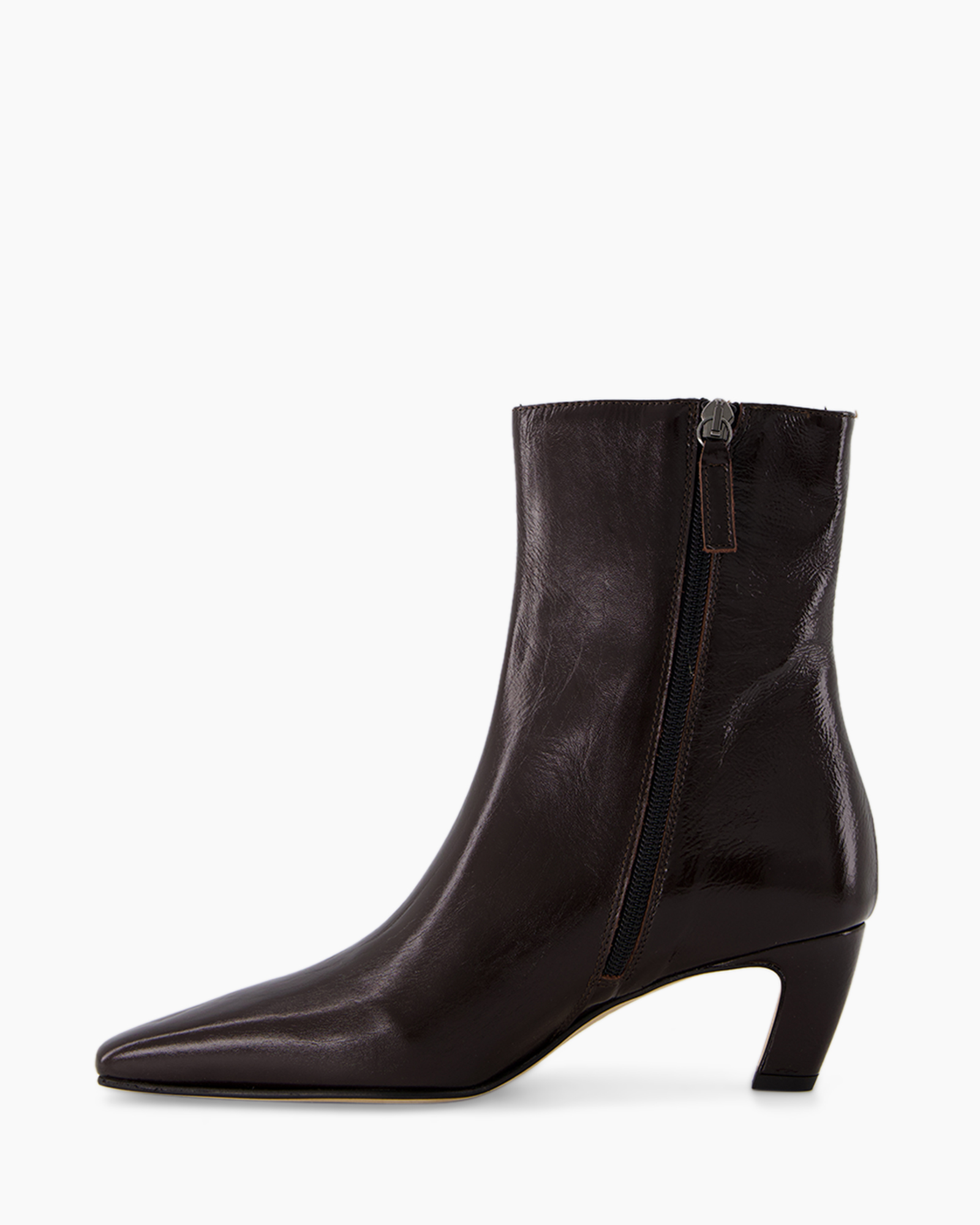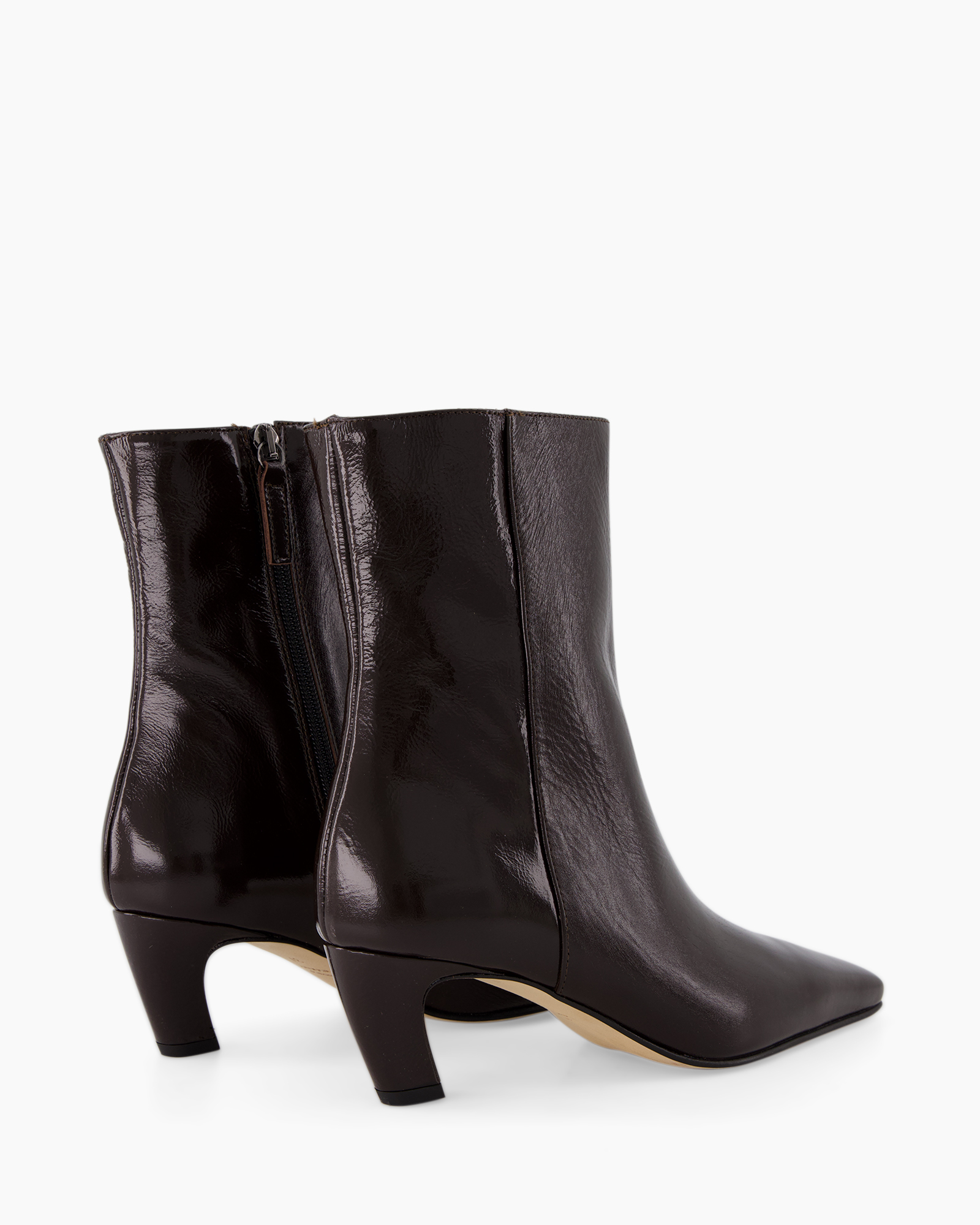 Het gladde, leren bovenwerk voelt luxe aan bij elke stap. De subtiele rits aan de zijkant garandeert eenvoudig aan- en uittrekken. De hak heeft een ideale hoogte, waardoor je moeiteloos de hele dag door kunt. De diepe bruine kleur voegt een rijke, klassieke toon toe aan je garderobe.