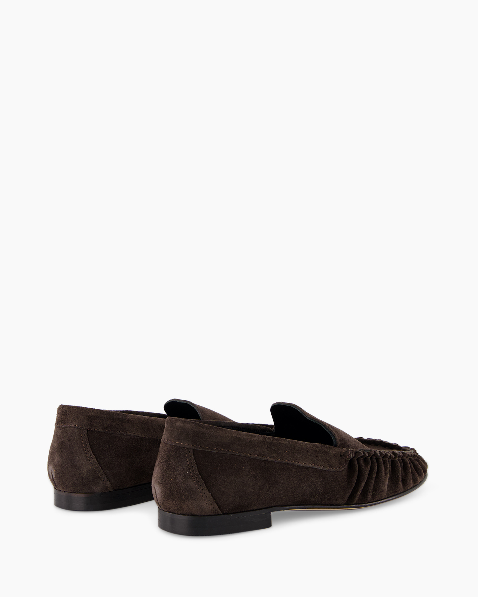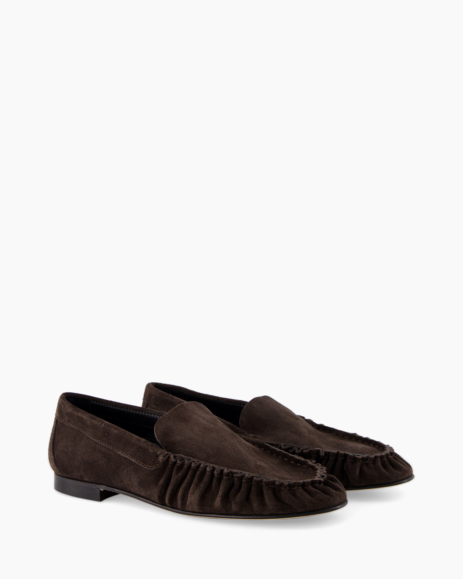 De hoogwaardige suède zorgt voor een luxueus gevoel en ademend vermogen. De subtiele ruche aan de zijkant voegt een extra dimensie toe, terwijl de strakke lijnen een klassieke uitstraling behouden. Zonder opvallende prints blijft de schoen veelzijdig en tijdloos.