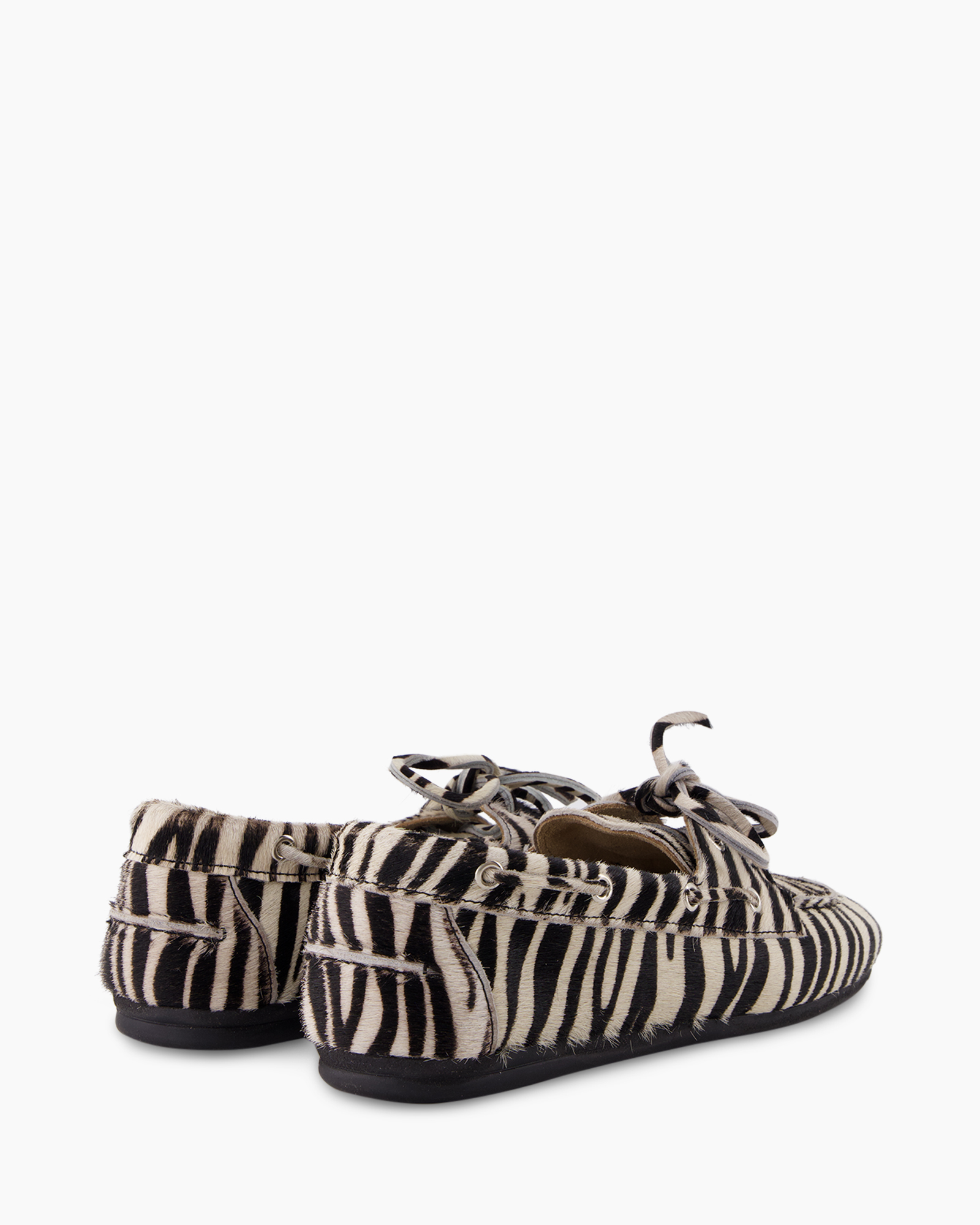 * Opvallende zebraprint in zwart-wit * Zacht kalfsleder met haar * Decoratieve veters rondom de schoenZo stijl je het