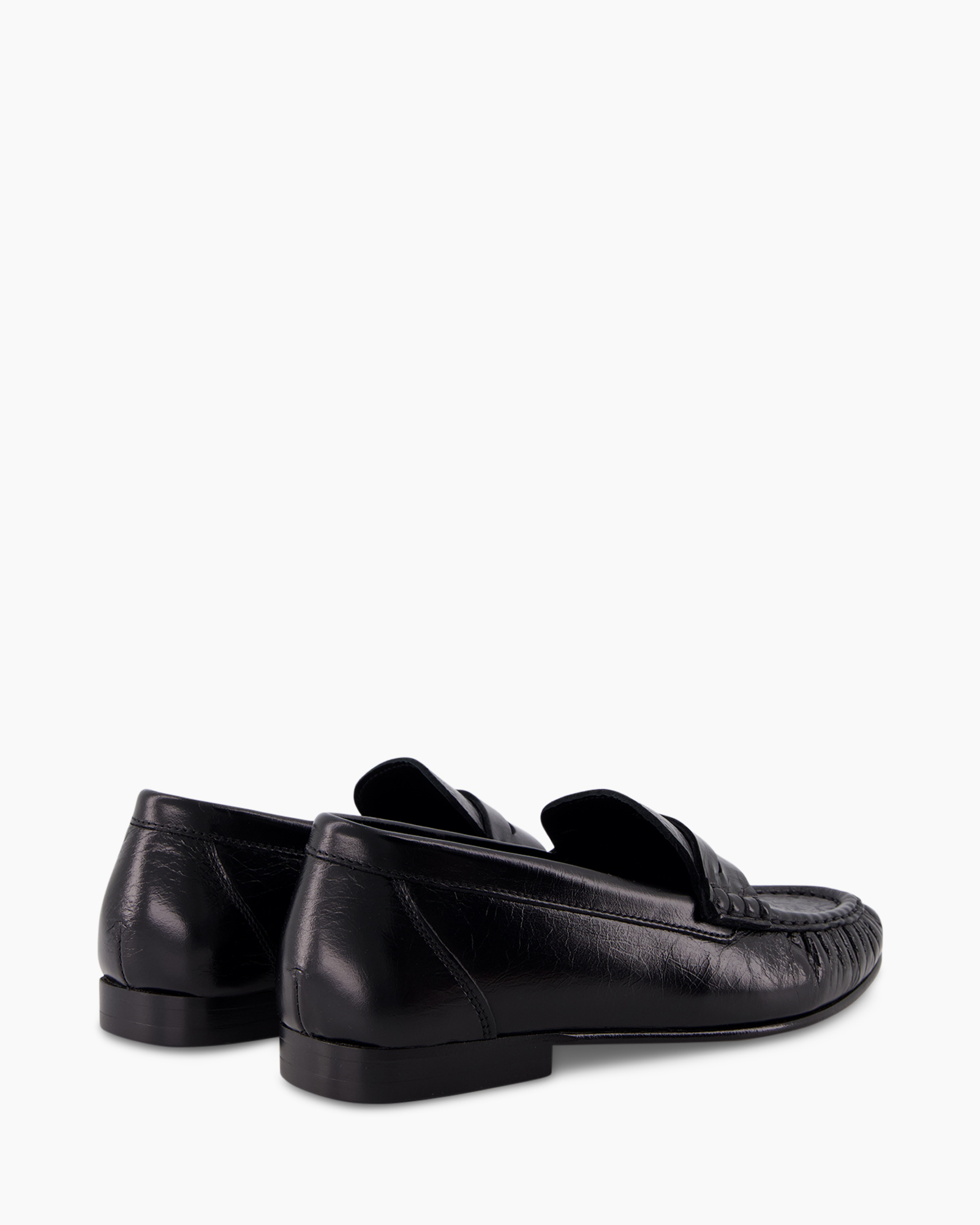 Ben je op zoek naar schoenen die comfort bieden en veelzijdig zijn? Dan is de Loafer Penny Wrinkle Zwart van Posa een goede keuze. Deze loafer heeft een diepzwart uiterlijk en een verzorgde afwerking. Je trekt deze instapper vlot aan en draagt hem de hele dag. De schoen heeft een opvallend detail: het gerimpelde leer op de neus. De klassieke pennyband over de wreef maakt de uitstraling compleet. Veters ontbreken, wat zorgt voor een gestroomlijnd geheel.