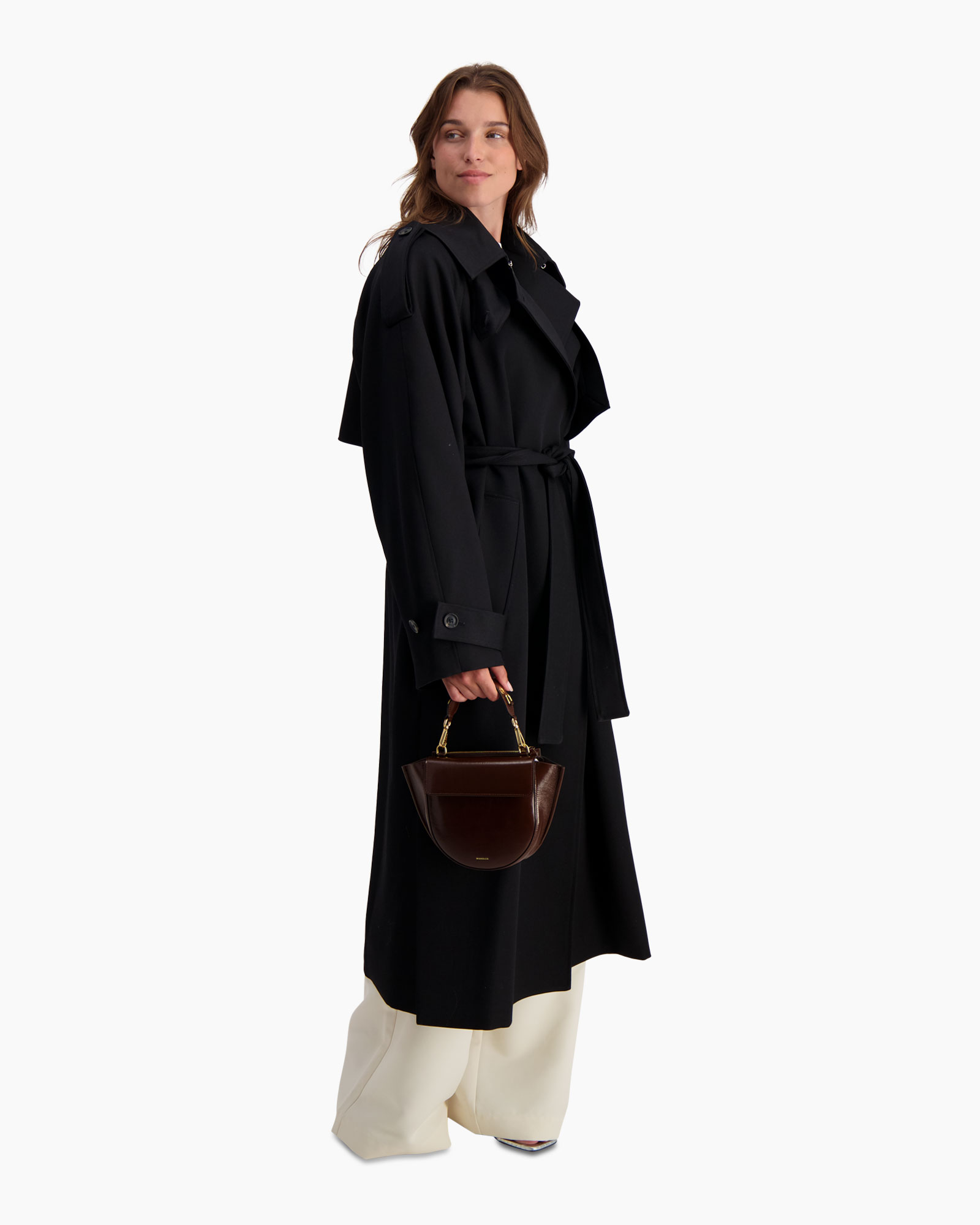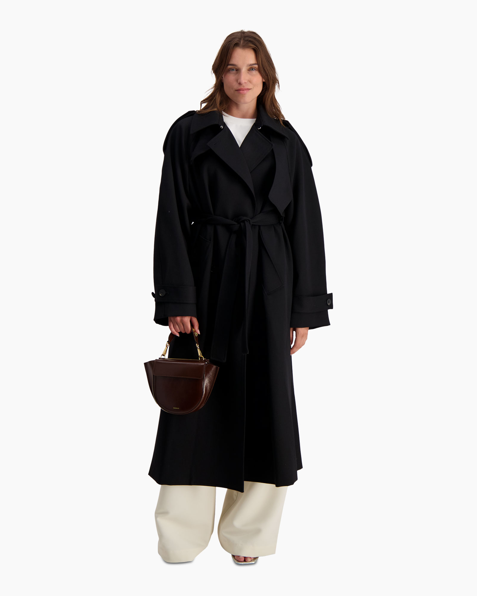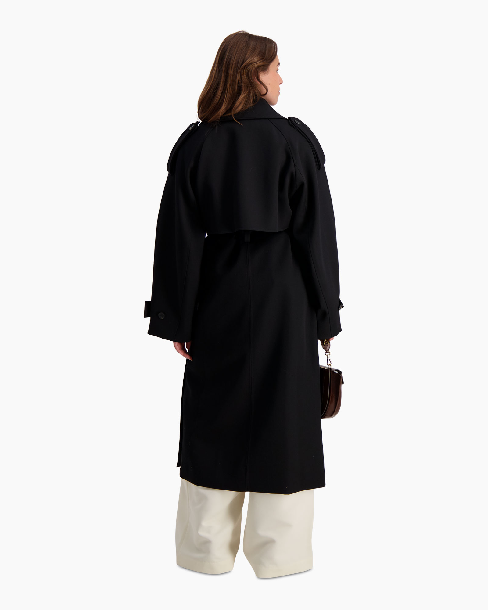 Deze Jas Oversized Classic Zwart van Róhe geeft direct karakter aan je garderobe. Je ziet dat dit lange overkledingstuk een ruime pasvorm heeft en tot over de knie valt. De diepzwarte kleur staat krachtig en is veelzijdig te combineren. Dit ontwerp kenmerkt zich door de brede kraag, het subtiele schouderdetail en de ceintuur waarmee je de taille accentueert.