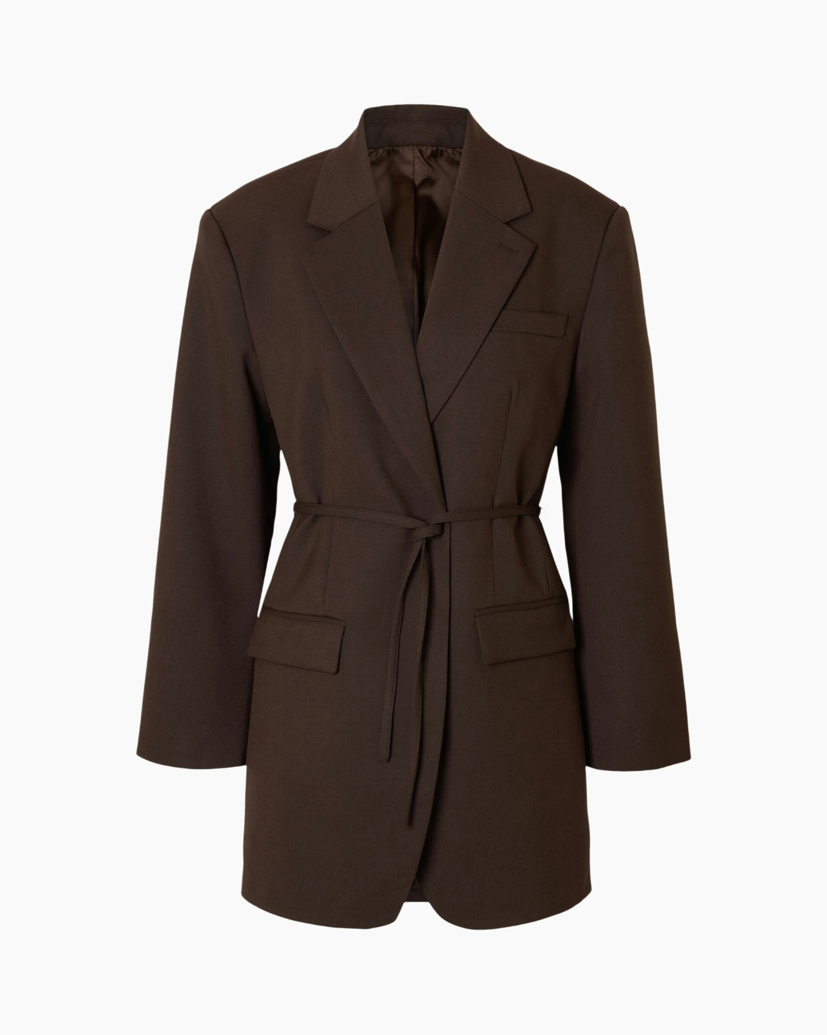 Gemaakt van hoogwaardig materiaal, zorgt dit jasje voor ultiem draagcomfort door zijn zachte textuur. De pasvorm is ruim, wat bijdraagt aan de hedendaagse look. Het ontwerp bevat stijlvolle details zoals een sluiting met een bijpassende ceintuur, een klassieke reverskraag en twee functionele klepzakken. De lange mouwen geven het geheel een evenwichtige uitstraling. Er zijn geen prints of opvallende logo's zichtbaar, waardoor de blazer veelzijdig in gebruik is.